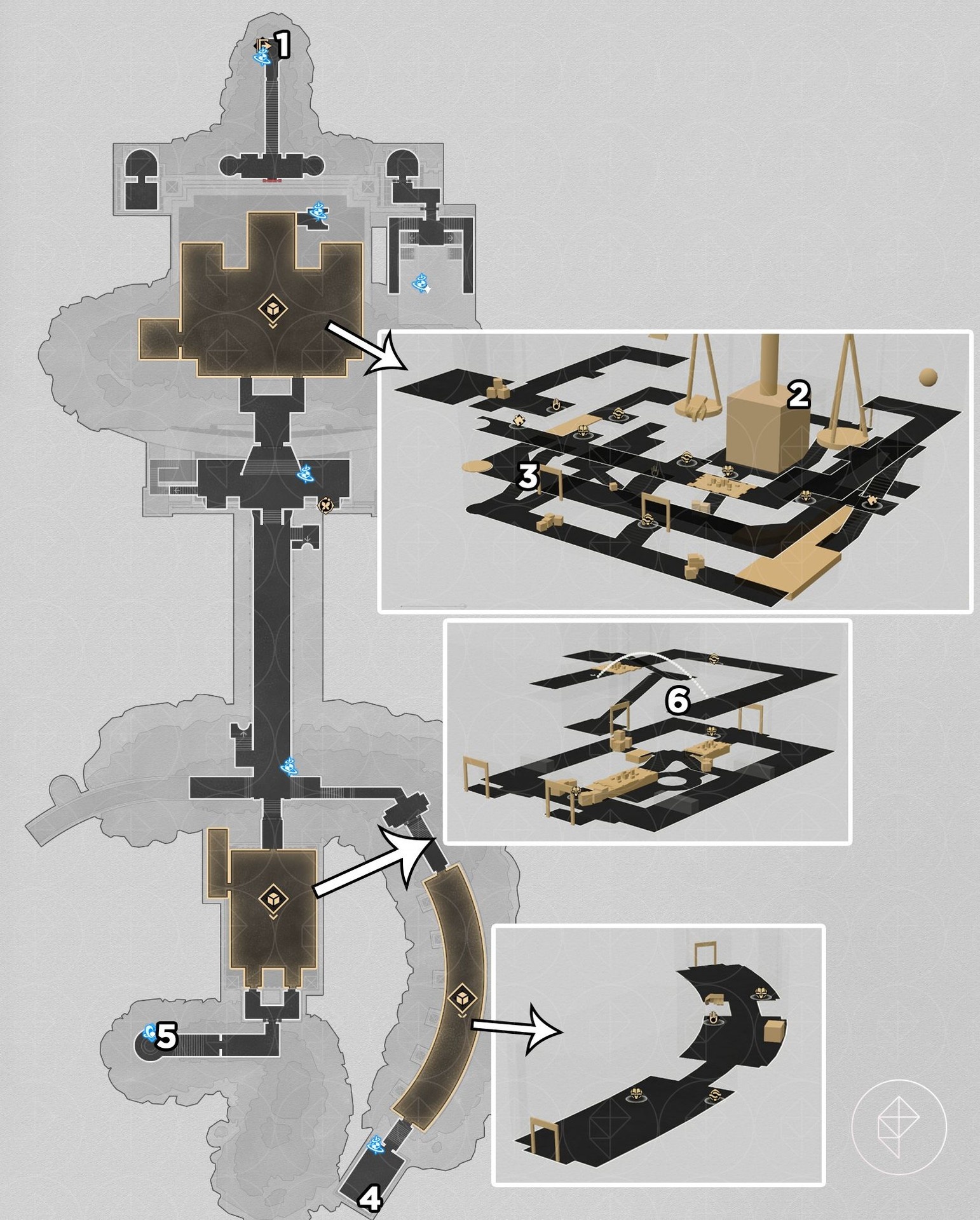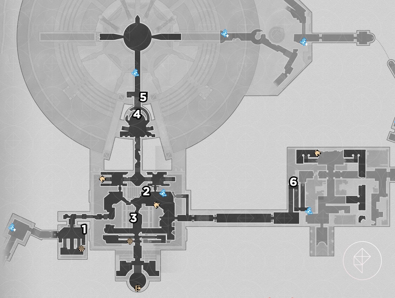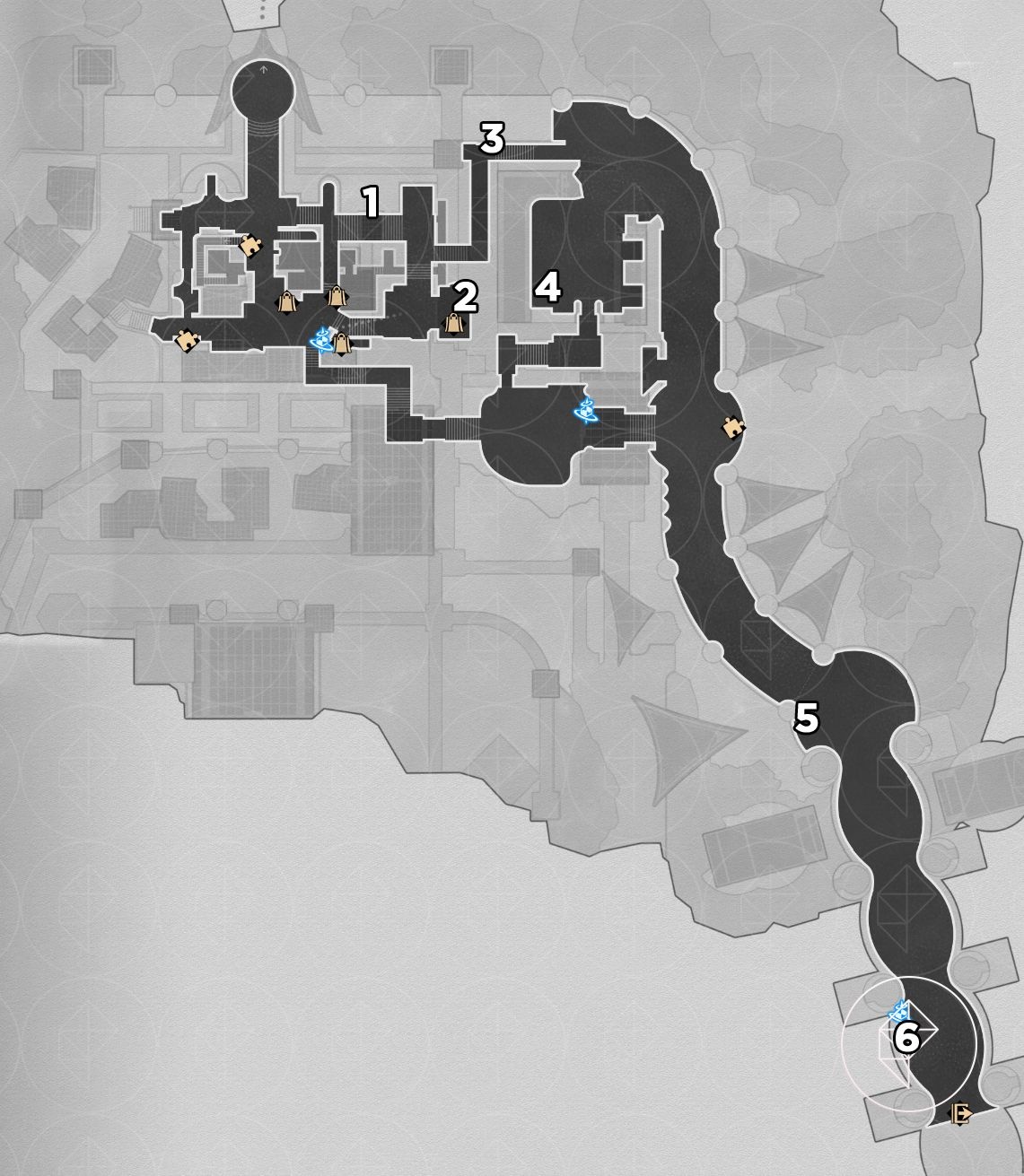 Note: for entries #3–5 below you must use Bartholos to clog water ducts and drain the room to access lower floors.