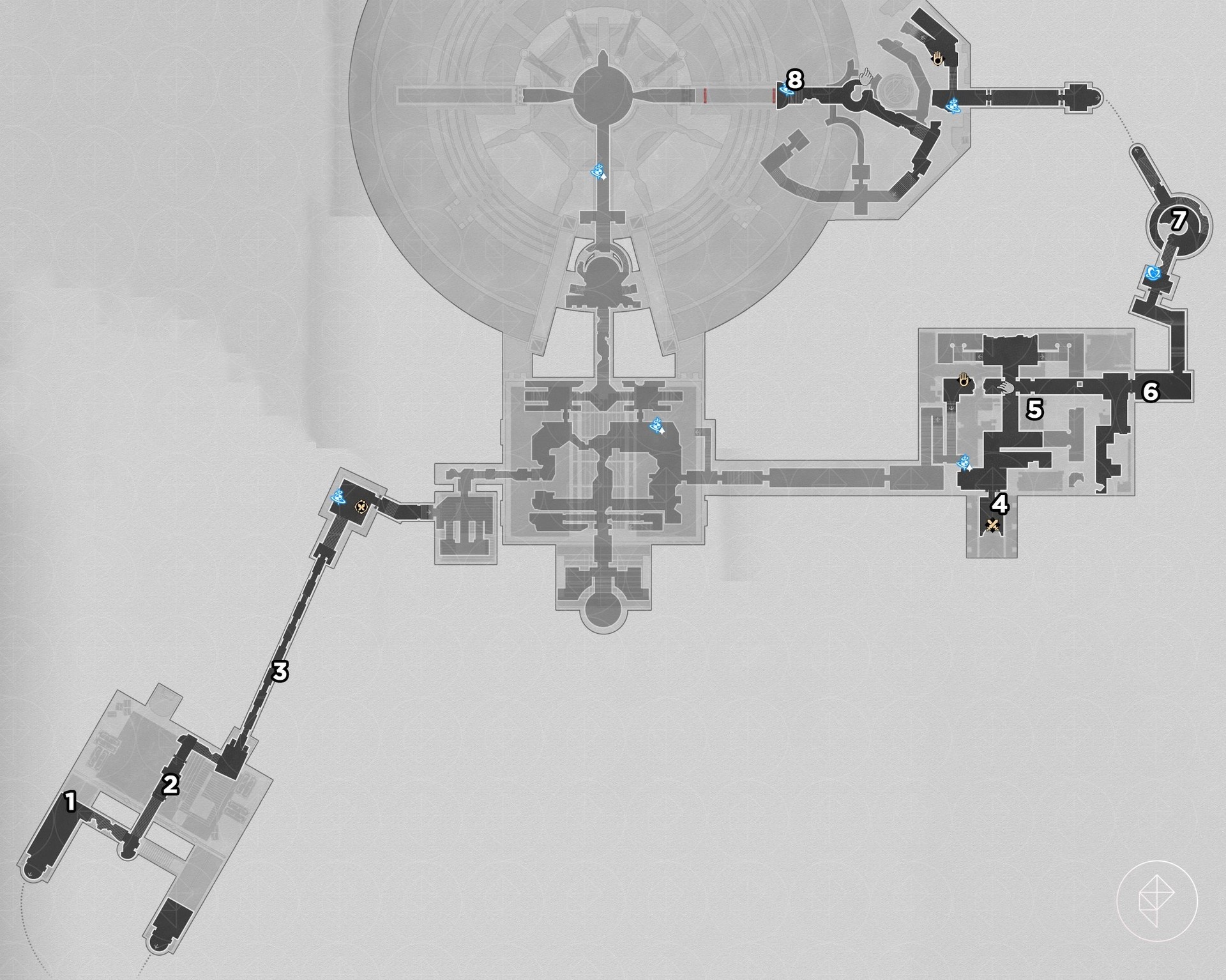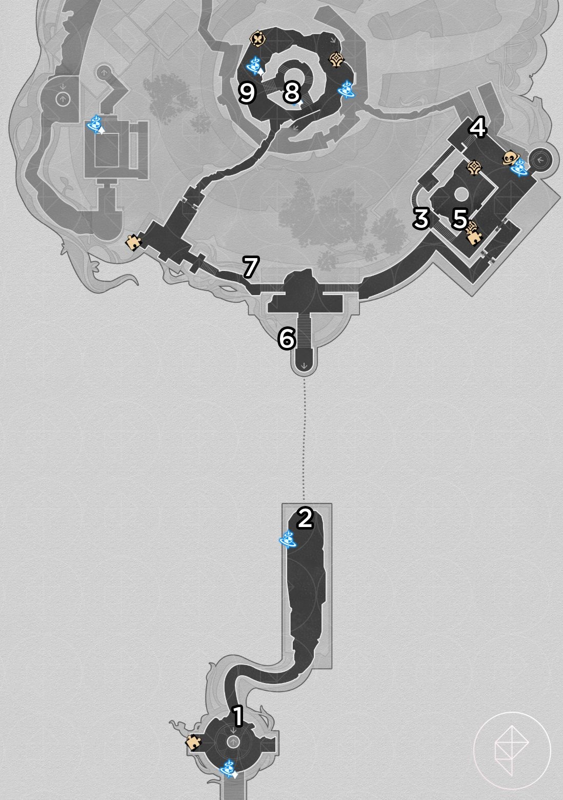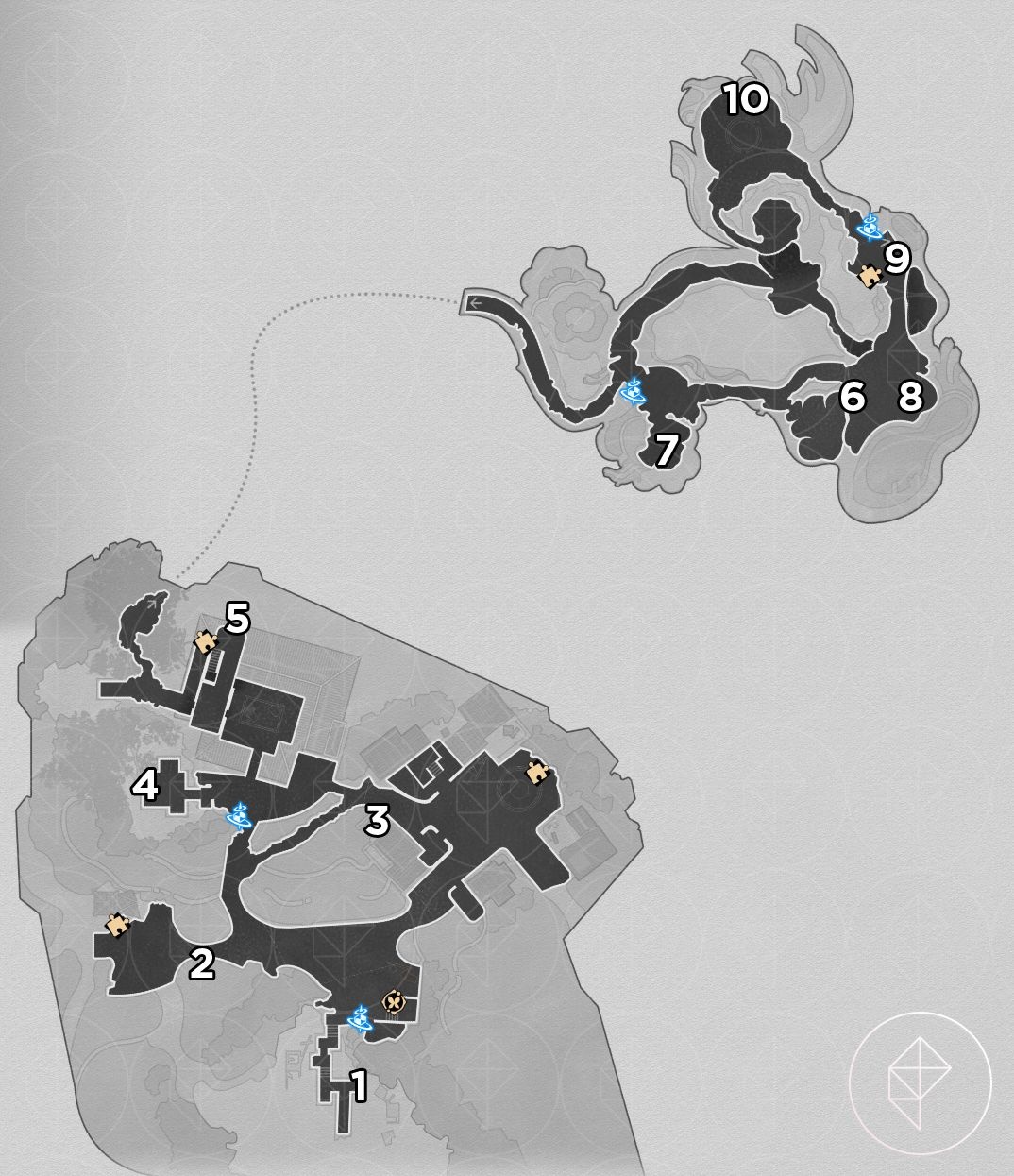 Note: for entries #3–5 below you must use Bartholos to clog water ducts and drain the room to access lower floors.