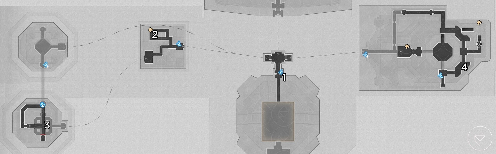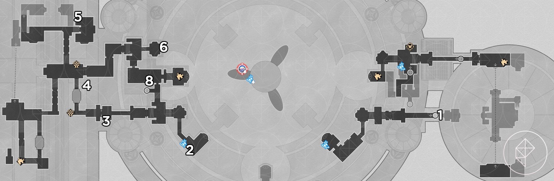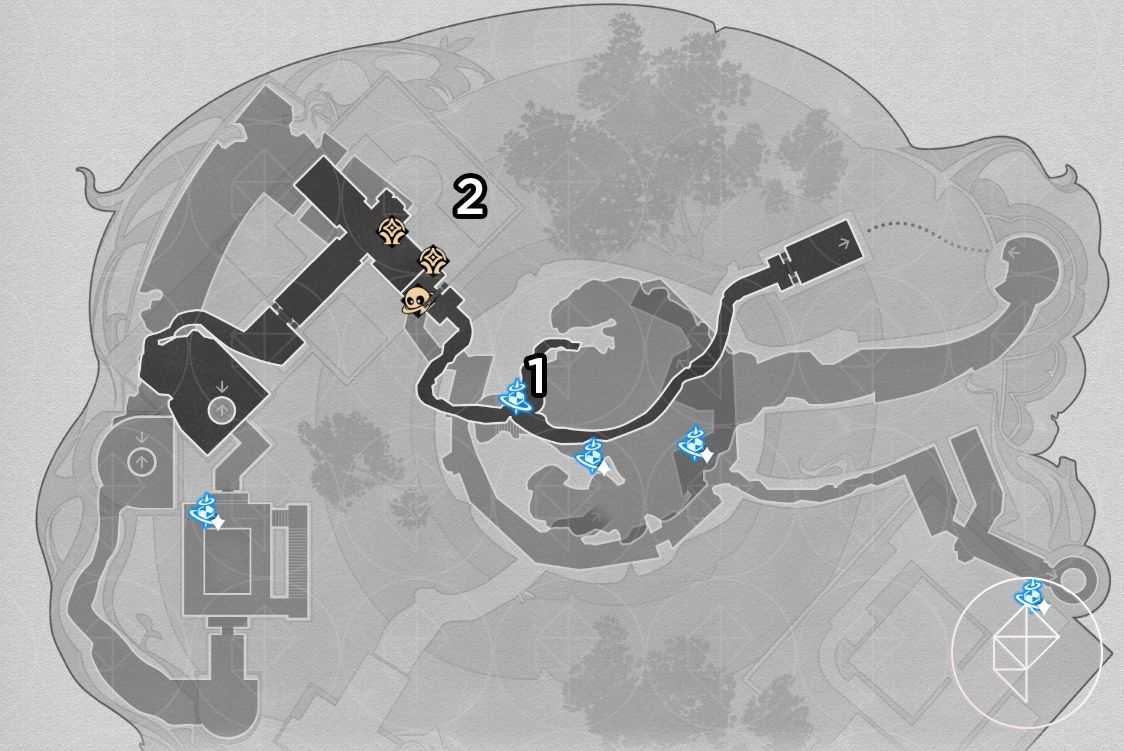 There are 20 red-orange beetle nymphs here. Rewards include Stellar Jade, Celestial Ambrosia, and the key item “Portentous Goldwoven: Bloodbathed Battlefront.” After collecting them, follow the key item hint and stand in the center of the round 3D room on B1 at dawn to trigger the area puzzle. Answer “Four warriors” when prompted to get the chest and the achievement “Chirping Secret: Blemish of Light.”