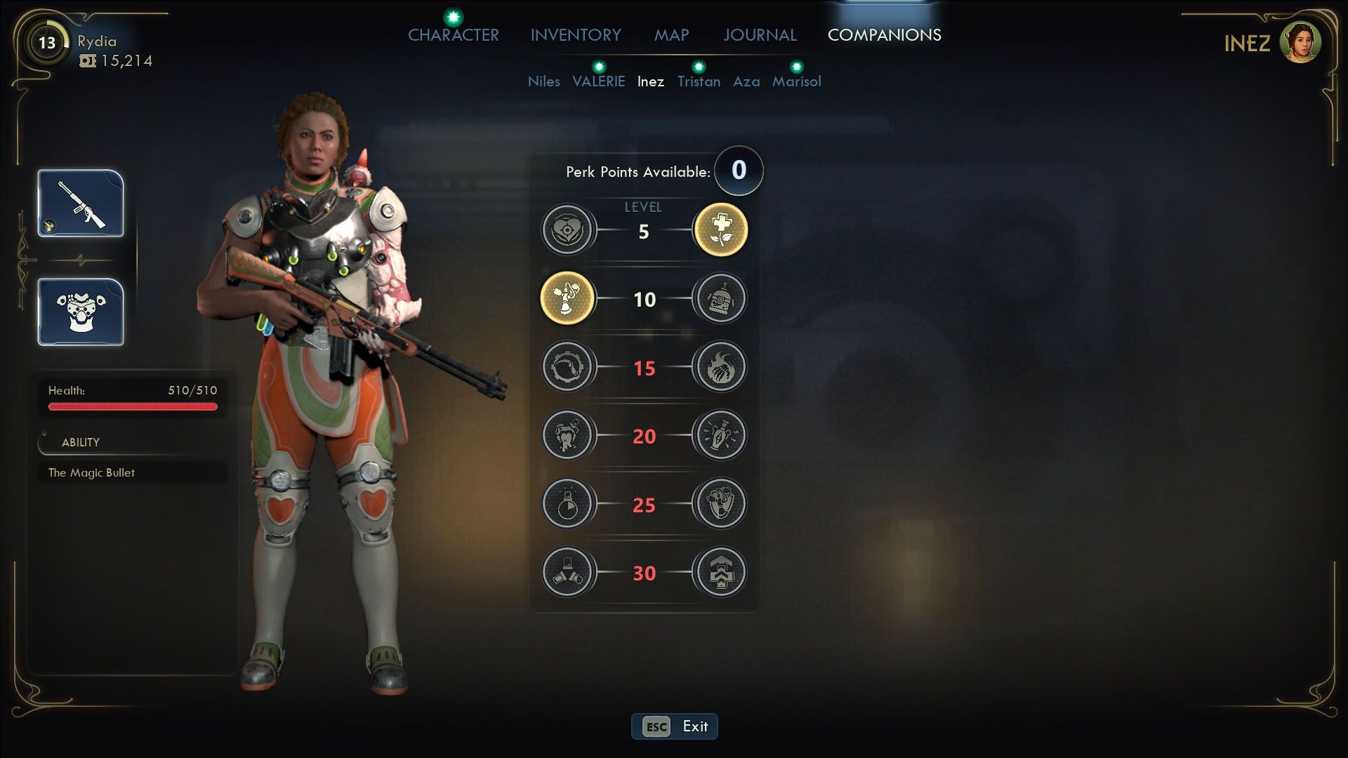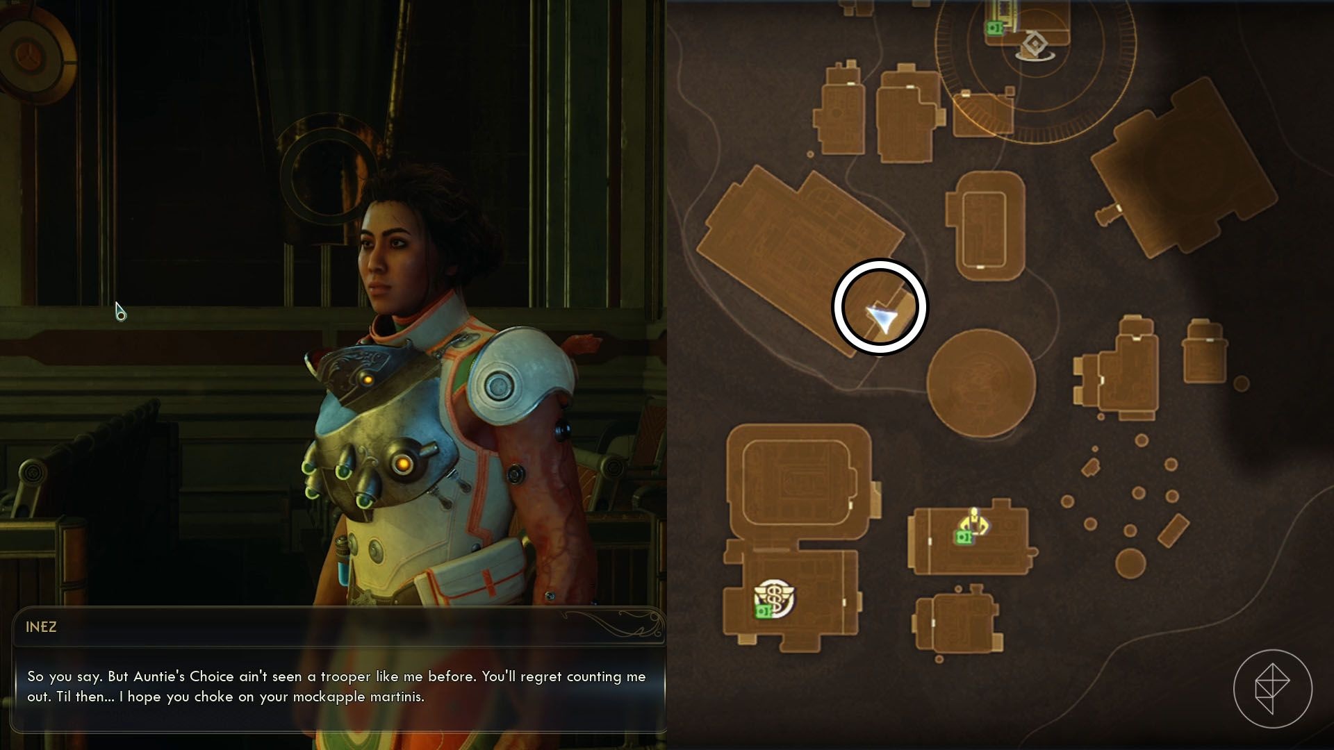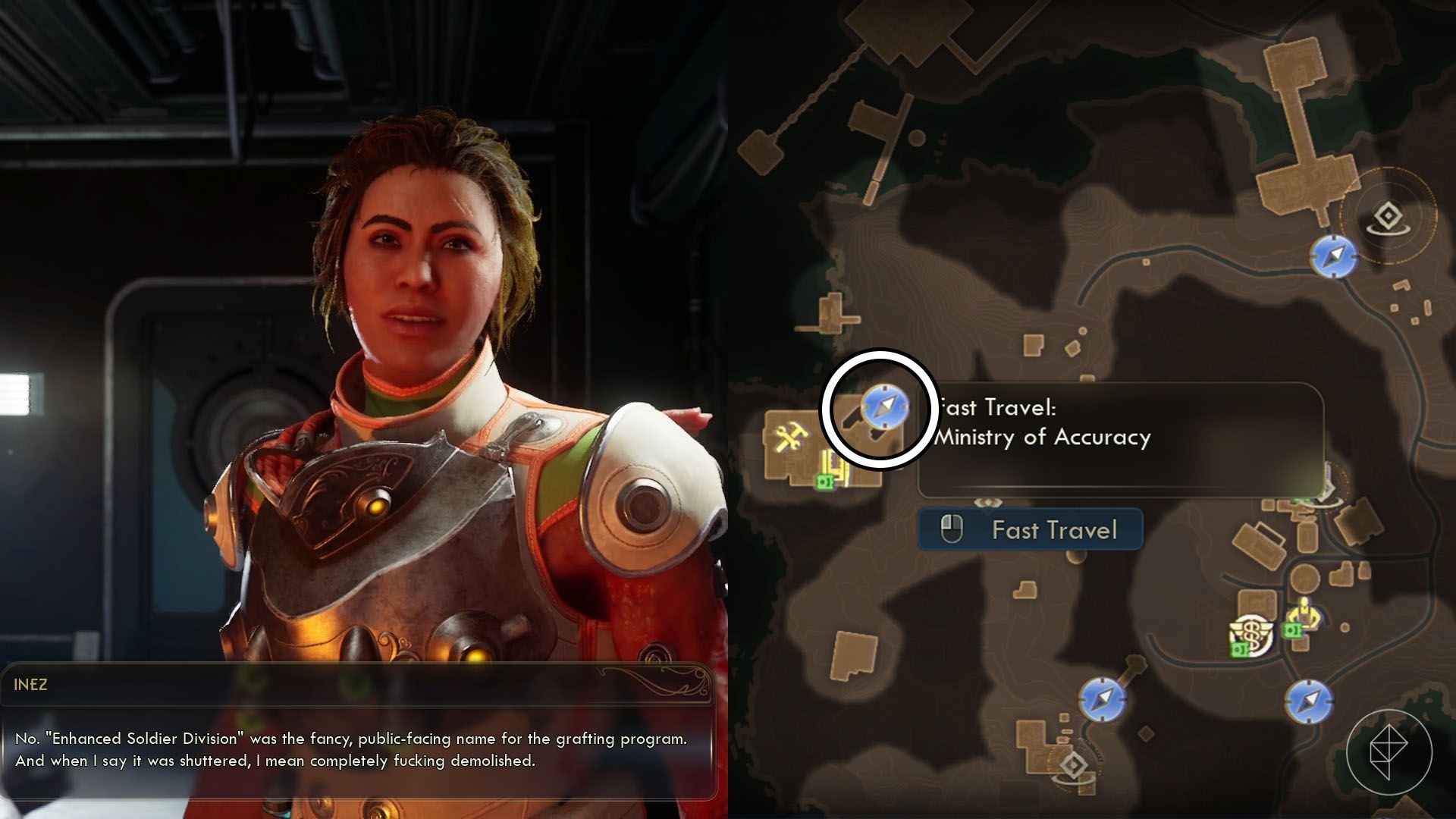 How to recruit: Inez appears during the main quest “The Saboteur of Paradise” when you visit Minister Milverstreet. You must meet Inez outside the Ministry and make the right conversation choices to convince her to join. The source-provided dialogue options that led to recruitment were: