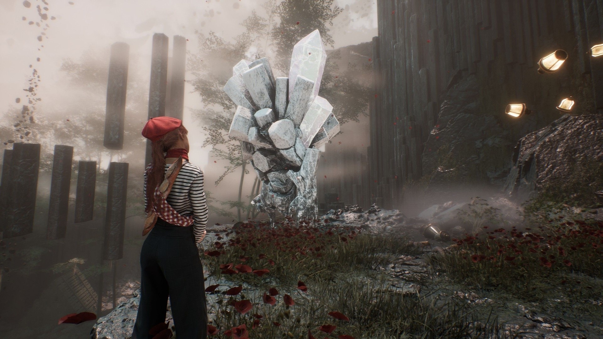 Location: Stone Quarry. The Troubadour sets up a rhythm/dodging trial — dodge all the red notes to pass. Successfully completing the trials grants the Healing Parry Pictos.