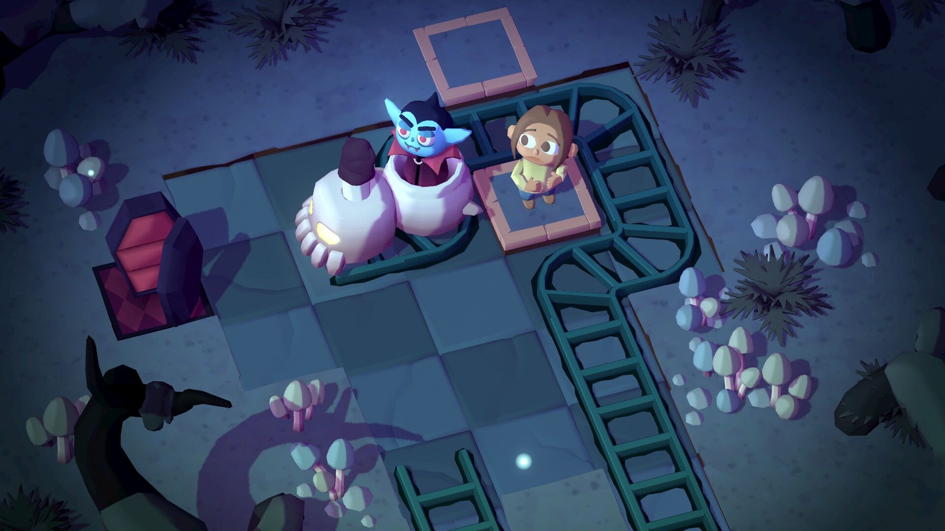 You lay tracks directly on bite-sized grids, and then your train follows those tracks to pick up and drop off passengers. Different passenger types have specific homes: zombies go to graves, and vampires go to coffins. Moreover, some interactions create restrictions — for example, demons will incinerate vampires on contact, and humans can be scared or even turned into zombies when they pass by monsters.
