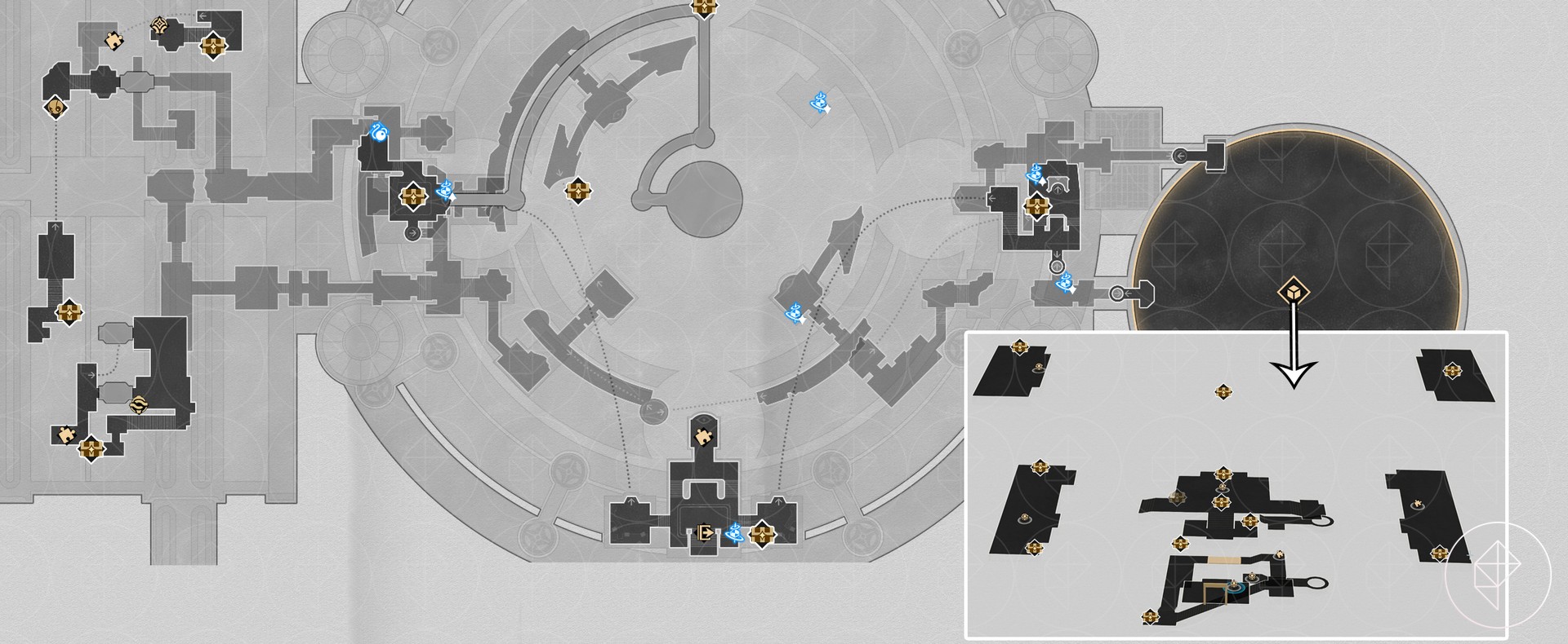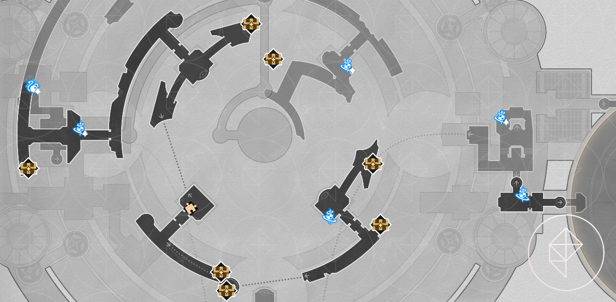Amphoreus introduces multi-floor, 3D maps. Some rooms change between dawn and evernight, shifting chest and enemy locations. All chests are marked on a single map, but remember, you’ll need to swap between both time settings to find them all. Explore every corner!