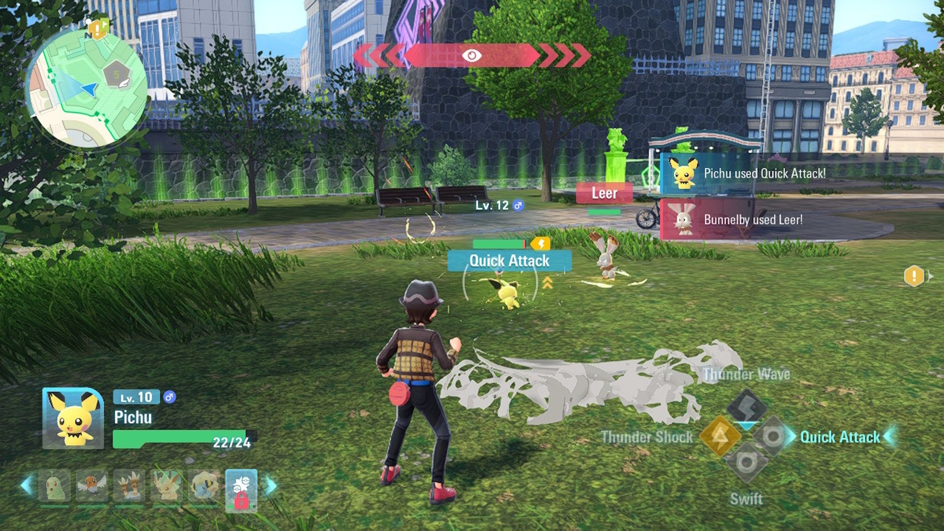 The game uses a real-time action system with cooldown timers similar to other action-RPGs. Importantly, speed affects cooldown length: higher speed reduces a Pokémon’s cooldowns, while speed debuffs increase an opponent’s cooldowns. At the same time, the party-wide experience share allows Pokémon that don’t participate directly in fights to still gain EXP and level up.
