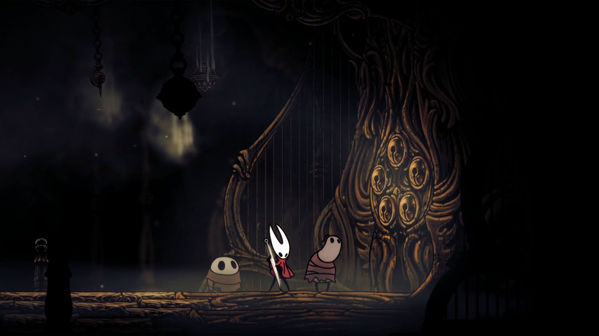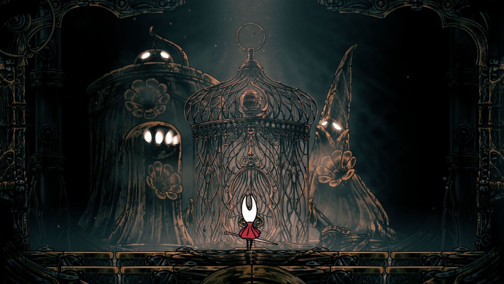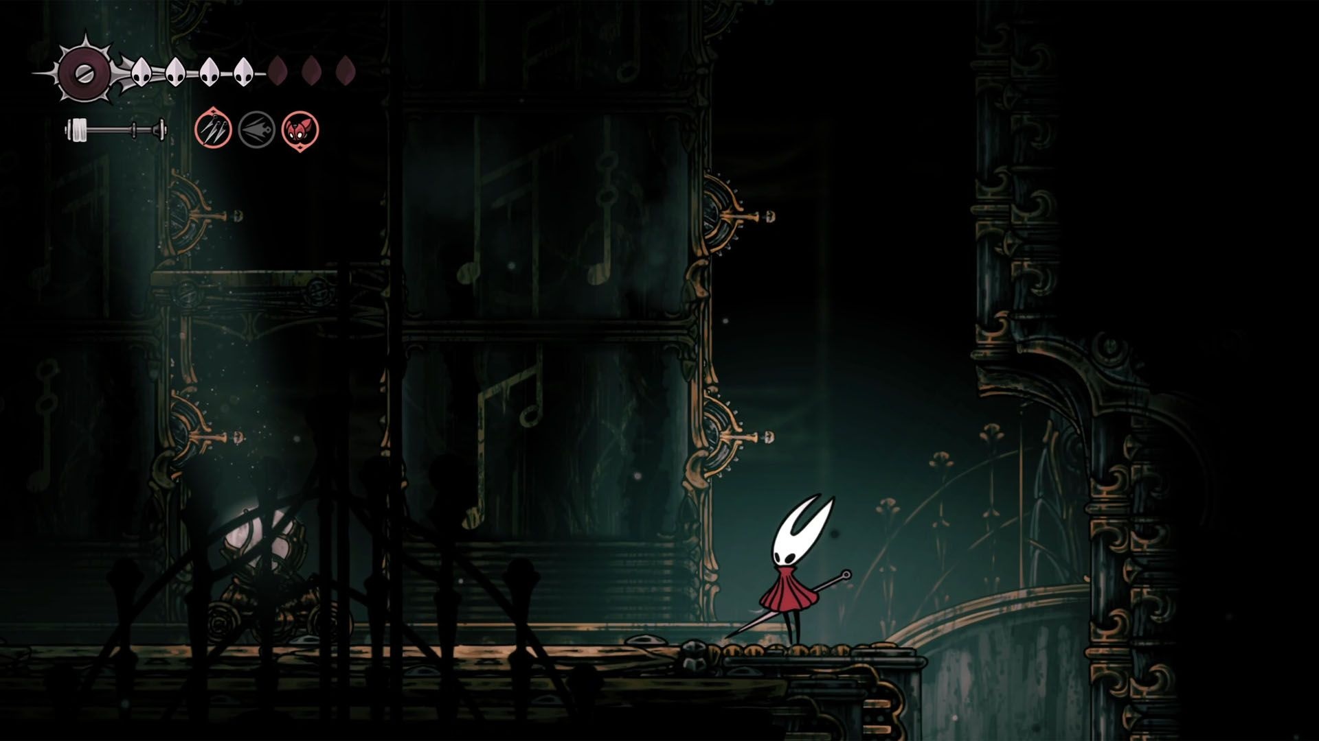 Return to Cogwork Core and play the Threefold song at the statues to unlock the elevator. Lace awaits at the top; defeat her to continue on to The Cradle and face Grandmother Silk. Defeating Grandmother Silk triggers the credits.