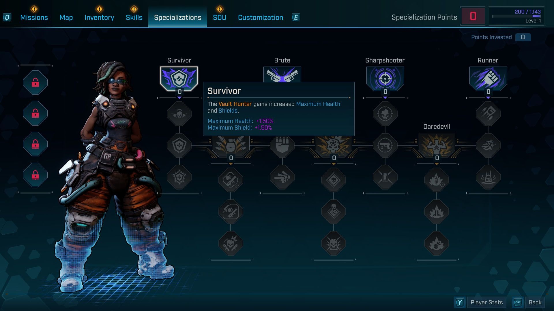 Specialization is a post-campaign passive-skill system that sits apart from your regular class trees. Each character shares the same Specialization pool, and you spend earned points to unlock nodes that grant passive bonuses. Importantly, you can respec Specialization points, but using a respec machine costs 5,000 Eridium. Also, every character starts with one Specialization point at level one and gains more as they fill the Specialization XP bar.