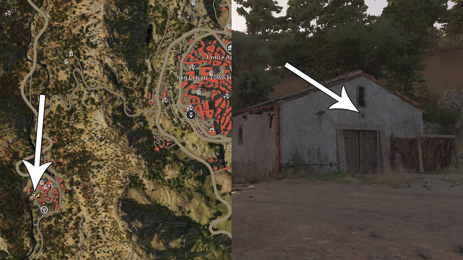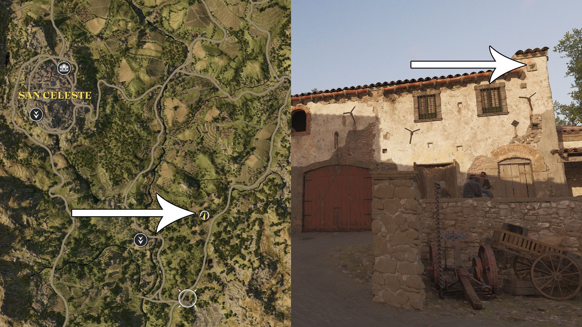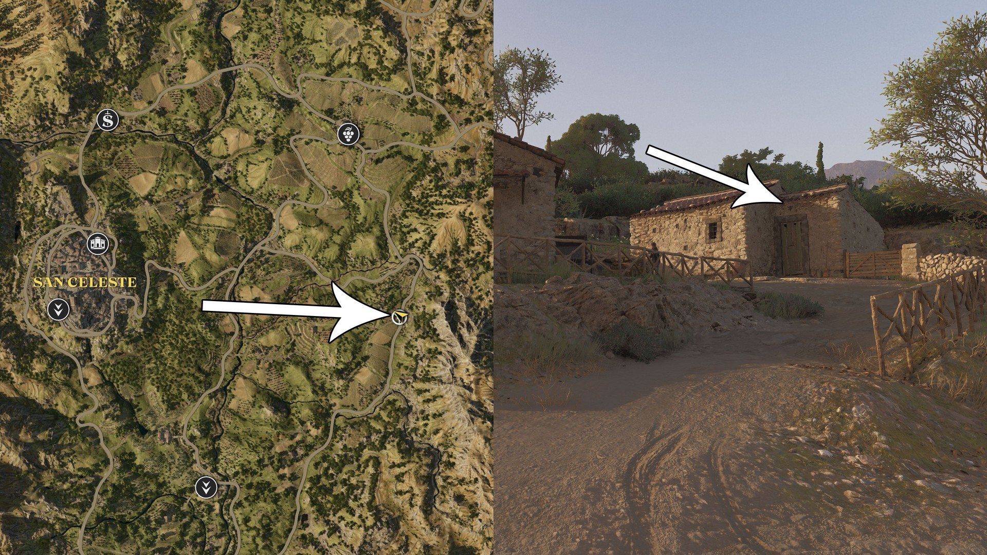 On a farm just west of San Celeste; it’s on the eastern wall.