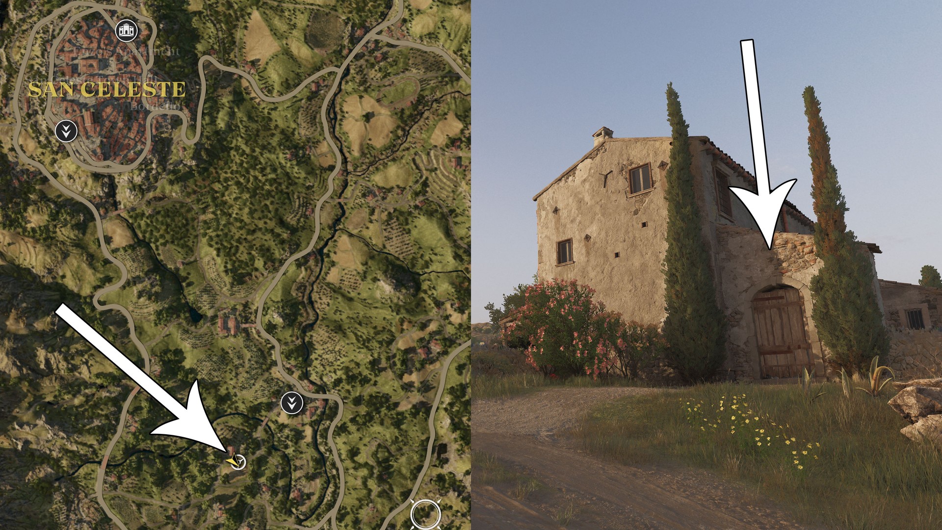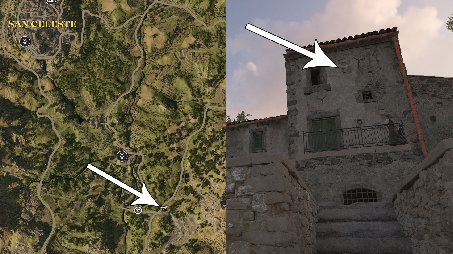 Look for the southeastern house in Collezolfo; it’s in front of the door, up the stairs.