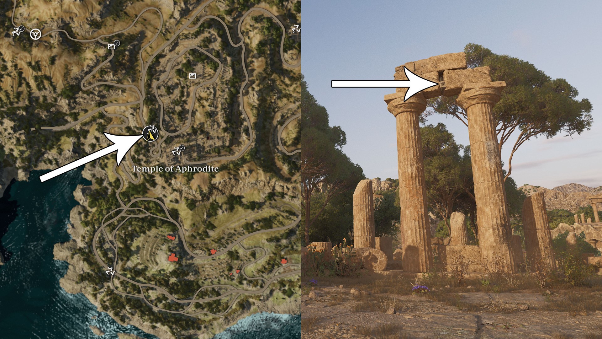 On the pillar directly north of the fast travel point at the Temple of Aphrodite.
