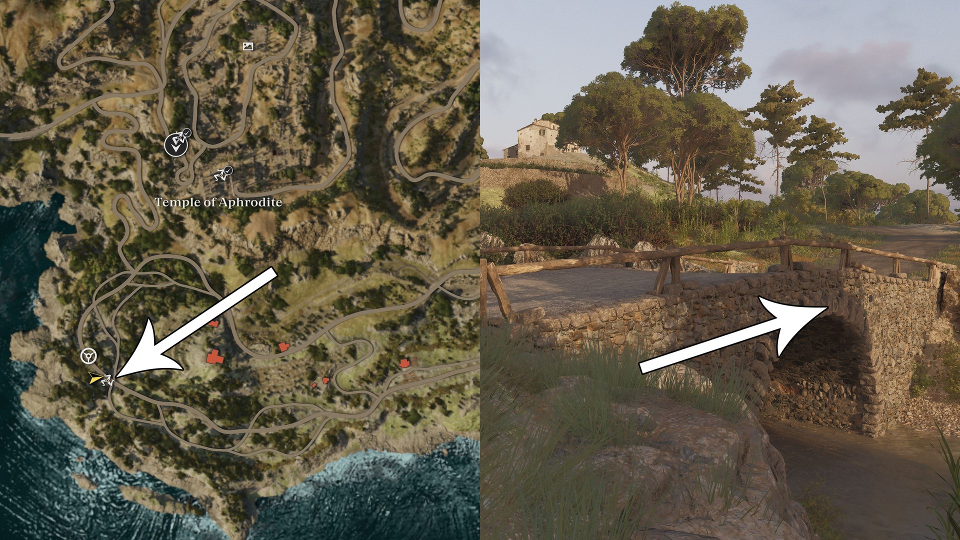 Follow the road far east of the Temple of Aphrodite and look for the old viaduct.