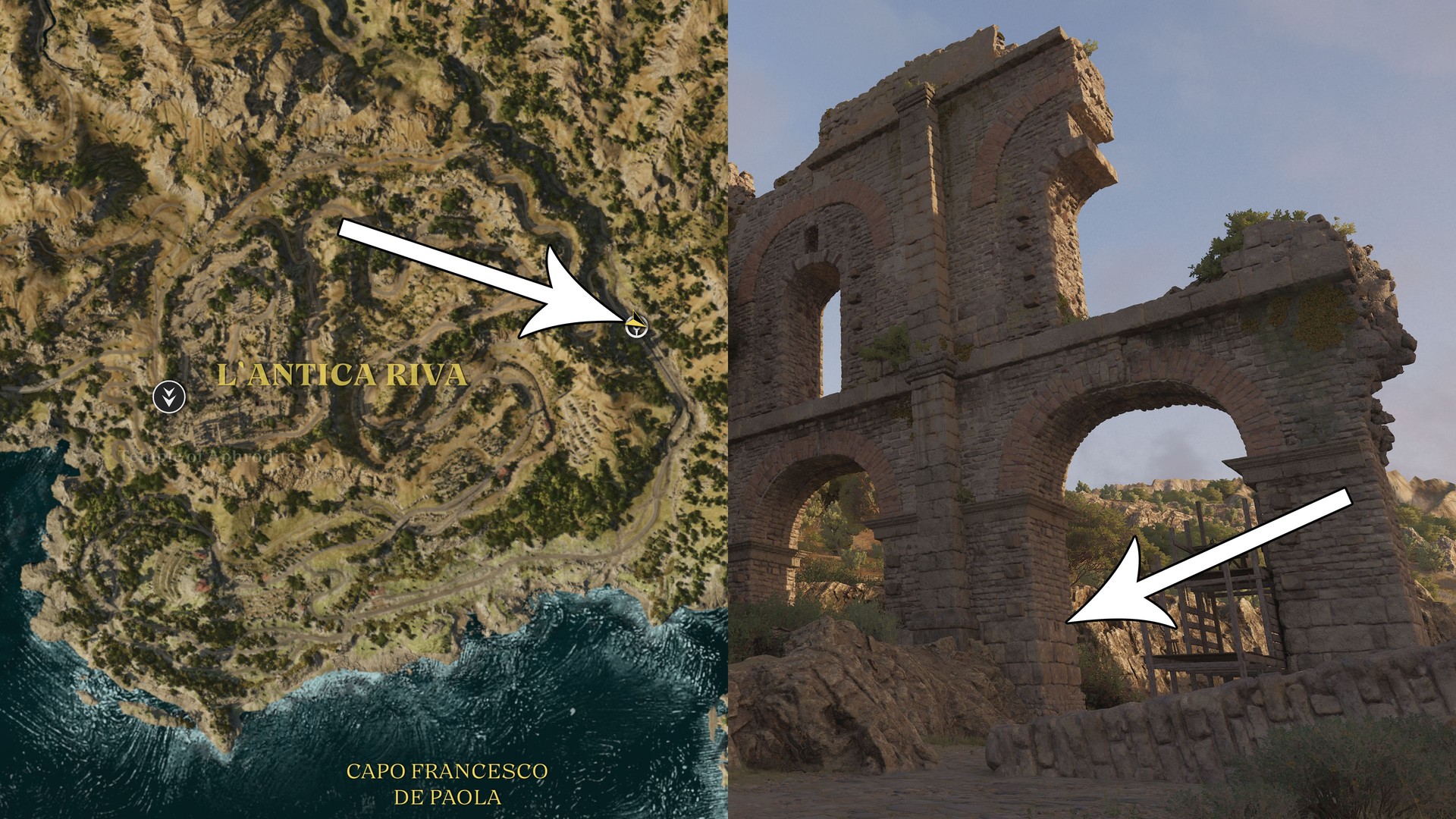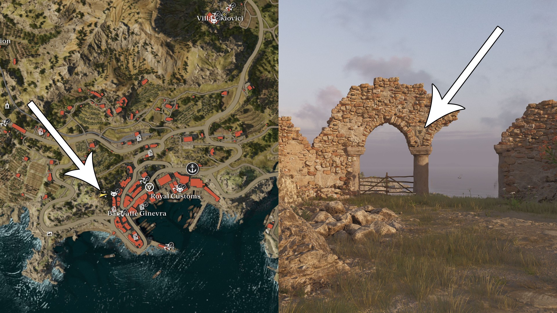 The following Trinacria are found in the open world. When you’re close, they will appear on the map. Pick them up at your own pace; there’s no time limit.