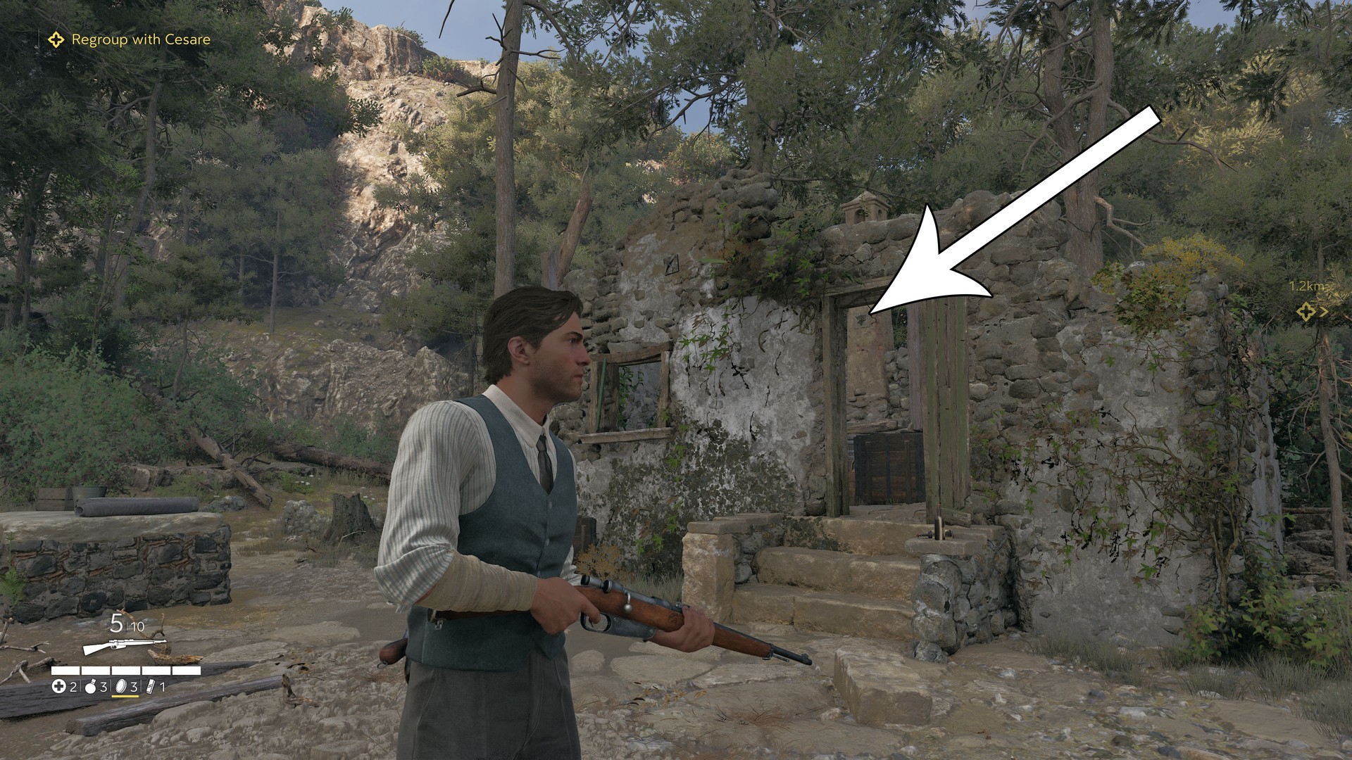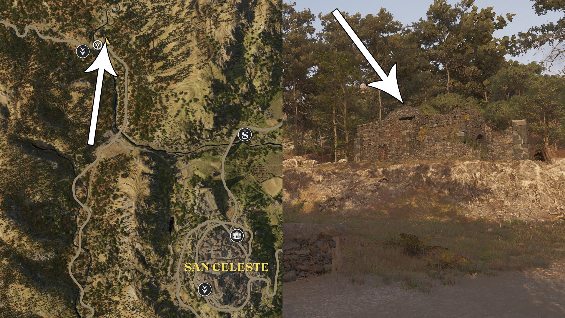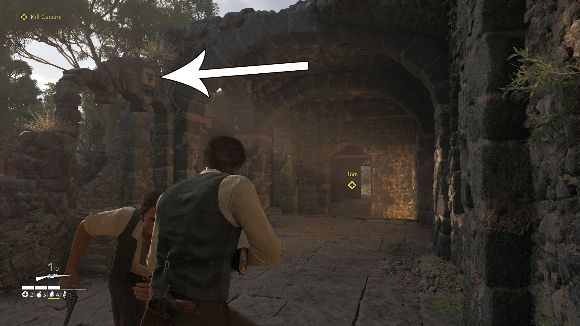 While chasing Caccini, check the larger ruin shortly before the left-side exit; it’s located there.