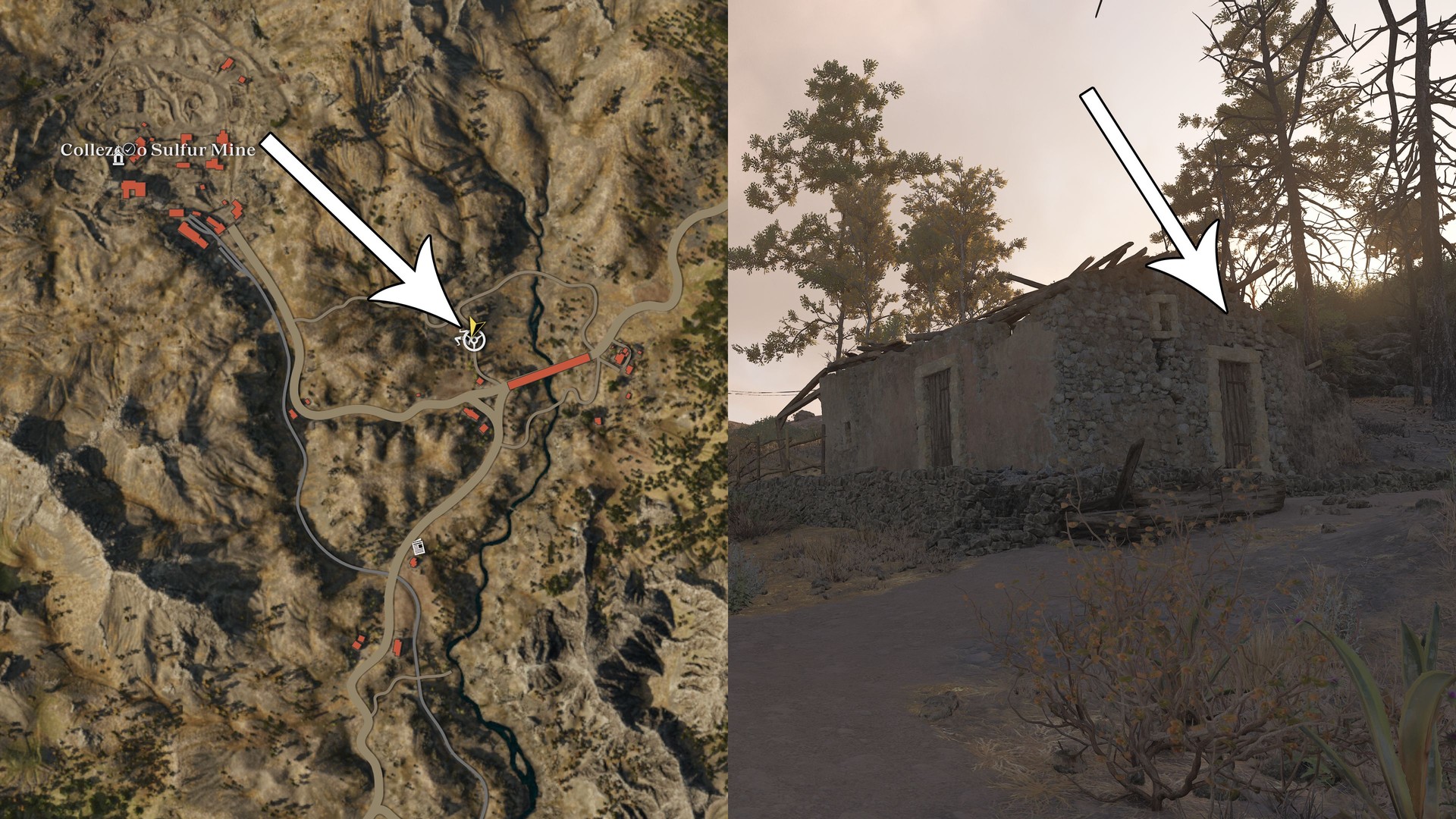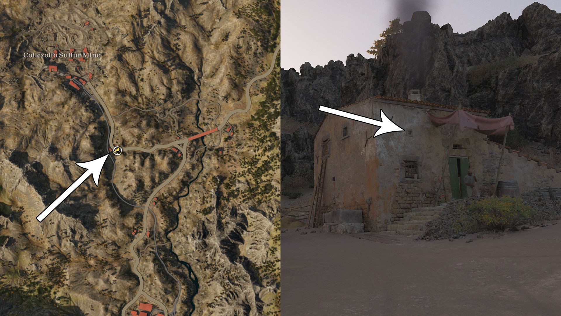 Take the northern road toward the Collezolfo Sulfur Mine; it’s on a farmhouse along the road, on the western wall.