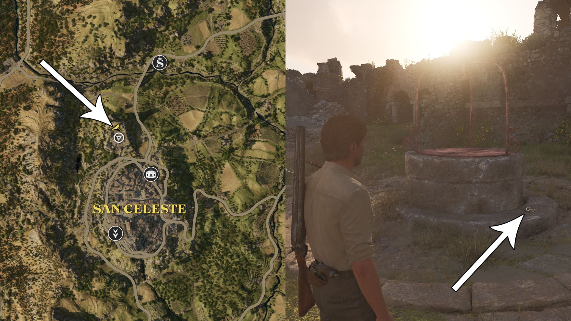 In the old ruin just north of San Celeste, on the ground next to the well.