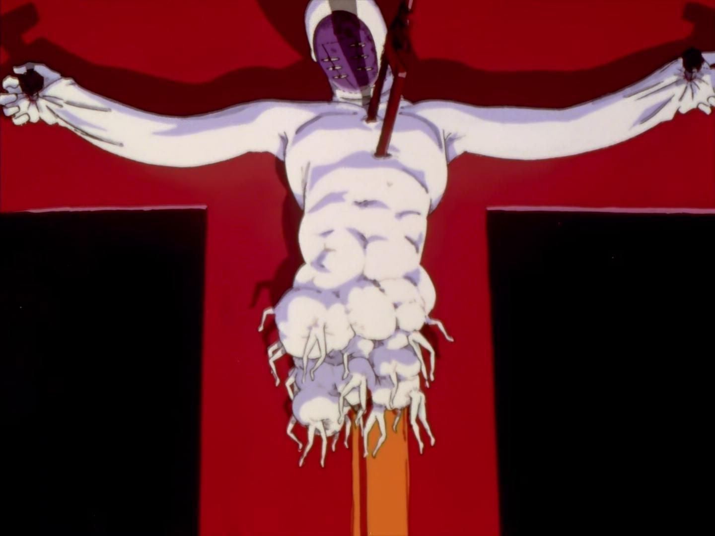 Episode 2’s imagery of a large angel-like being held in a deep, sealed facility and having liquid harvested from its body has been noted as visually similar to a scene in Neon Genesis Evangelion. In Episode 15 of the original TV series, the creature known as Lilith is kept in the NERV base, bound to a large cruciform structure by the Spear of Longinus. In Evangelion, Lilith’s blood drains and is collected as LCL, the liquid used to connect EVA units with their pilots.