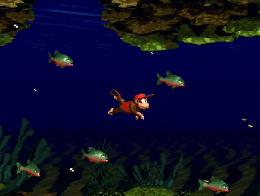 Donkey Kong Country was praised for its groundbreaking pre-rendered sprites and backgrounds. Playing it now, what stands out is how Rare used lighting and textures to create immersive environments. Whether it’s the vibrant colors of the jungle, the chilling Blizzard conditions in Gorilla Glacier, or the narrow flashlight beam in “Torchlight Trouble,” the atmosphere keeps you on edge.