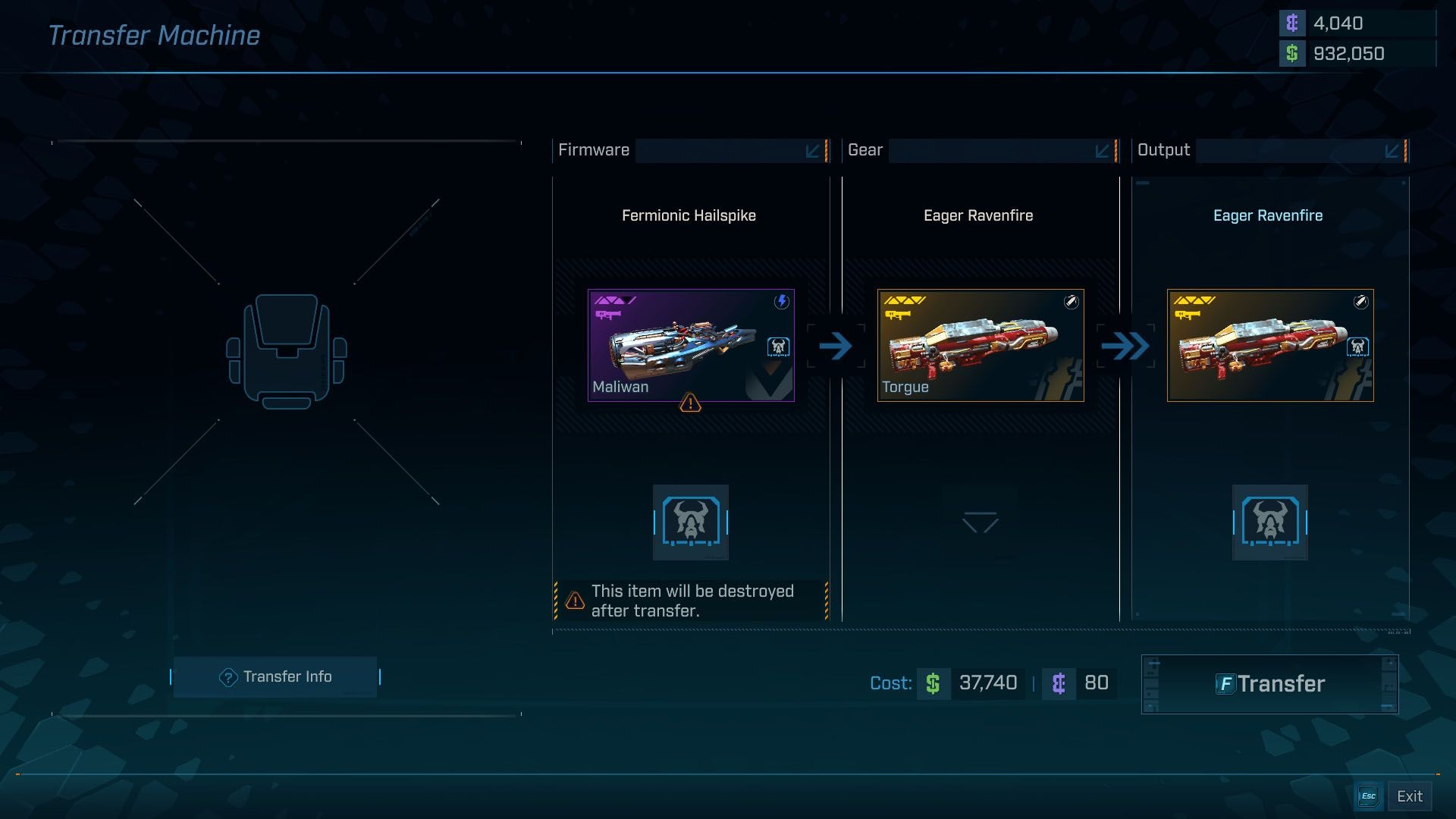Firmwares are bonus effects that can spawn on repkits, ordnance, class mods, shields, and enhancements. You can move a firmware from one item to another at a transfer machine. The cash cost varies with the items, but the machine consistently charges 80 Eridium for the firmware transfer action itself.