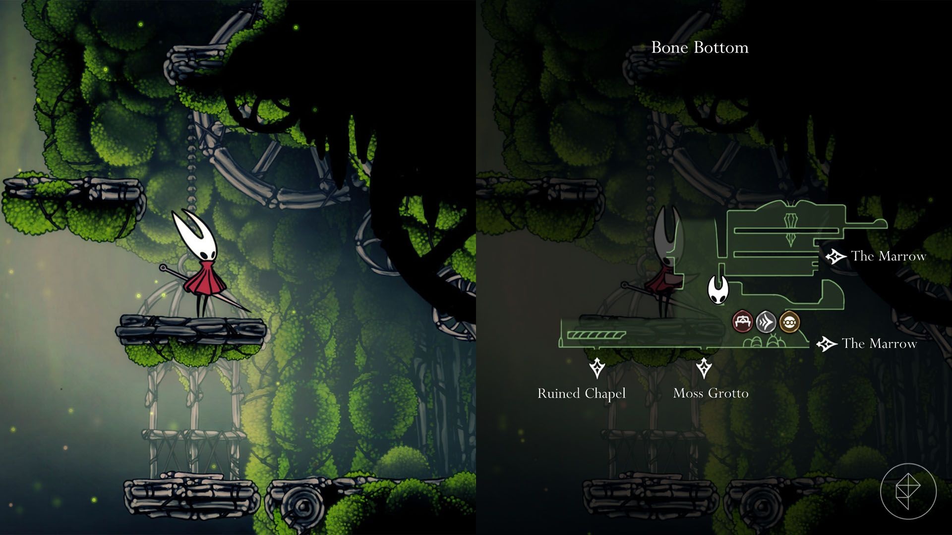 For the third berry, make your way past Shakra the map vendor in The Marrow and move up and to the left until you return to Bone Bottom. From there, drop down the platforms until you find an elevator; hit its switch so you can use it later if needed.