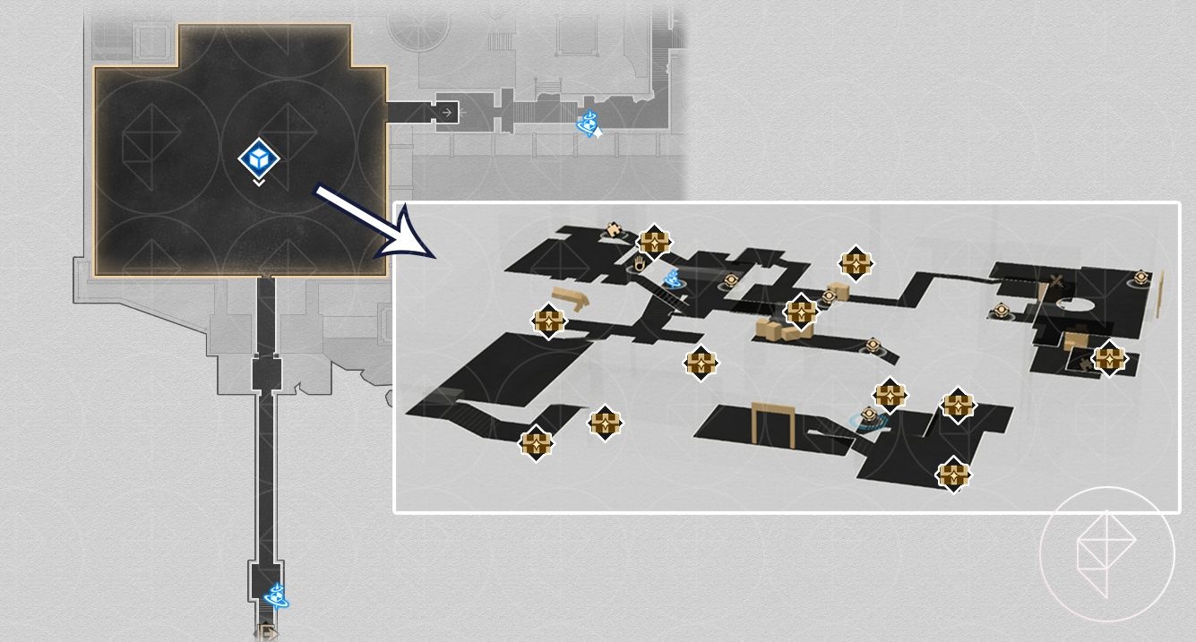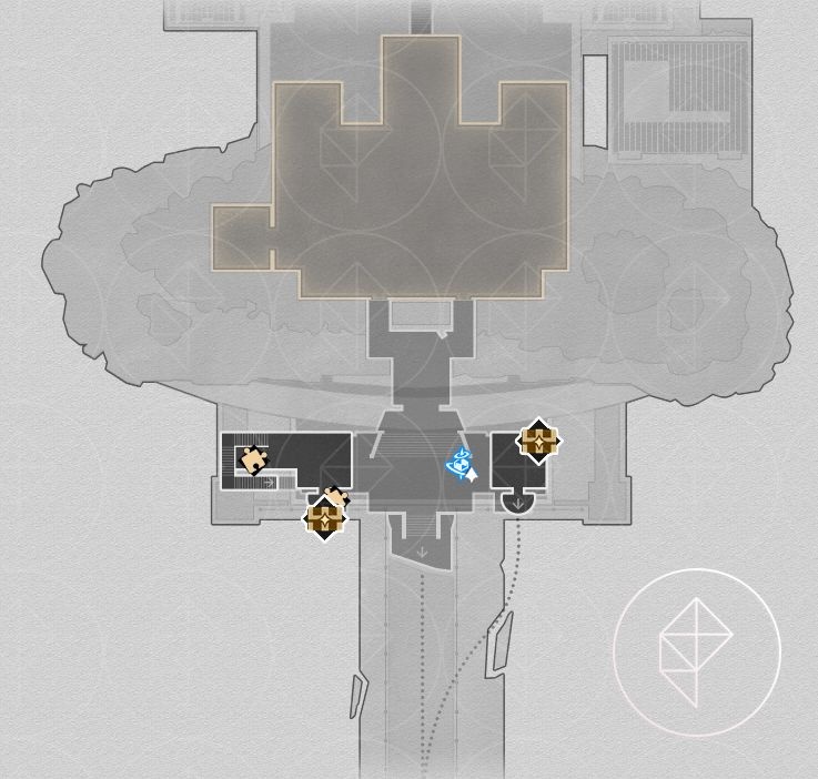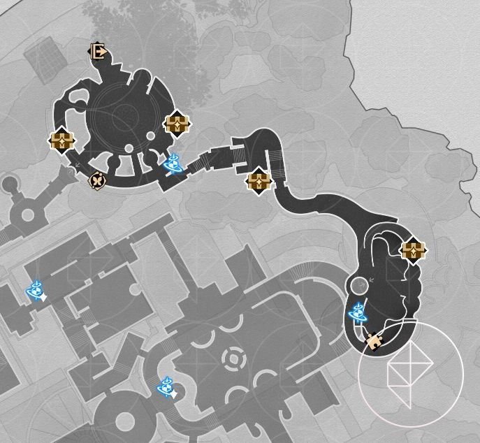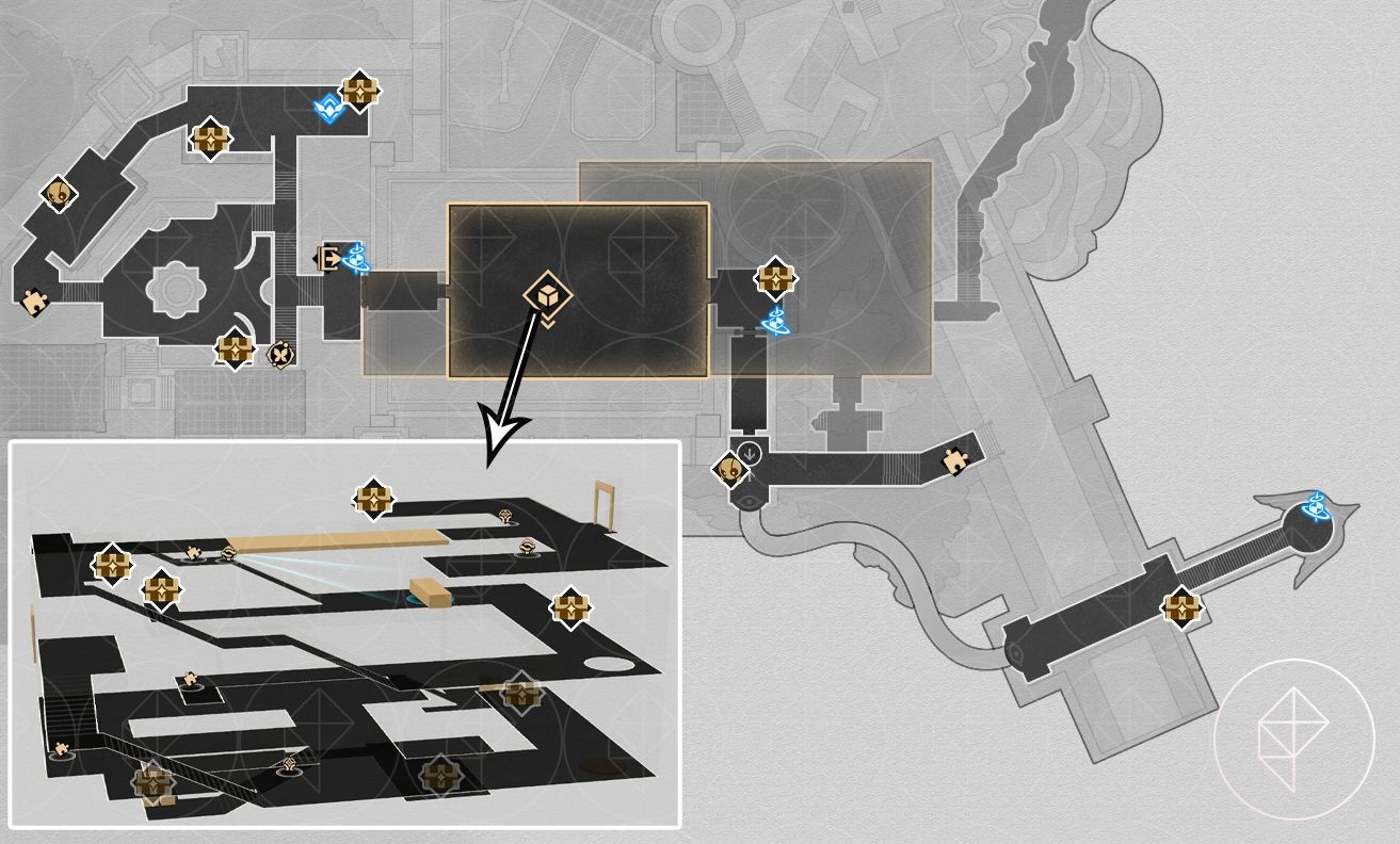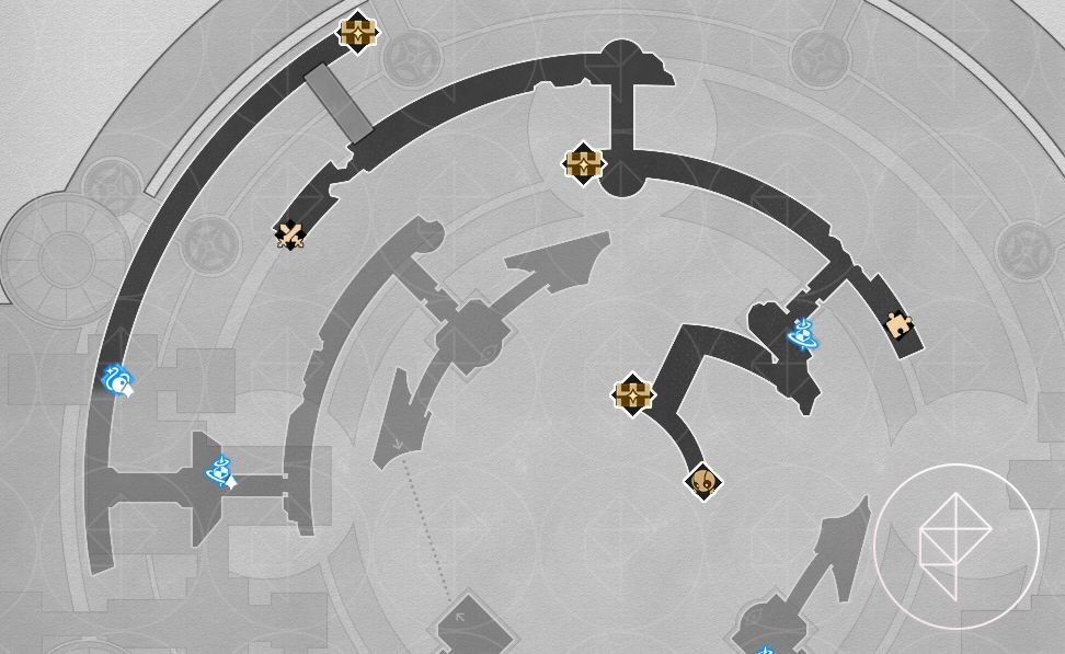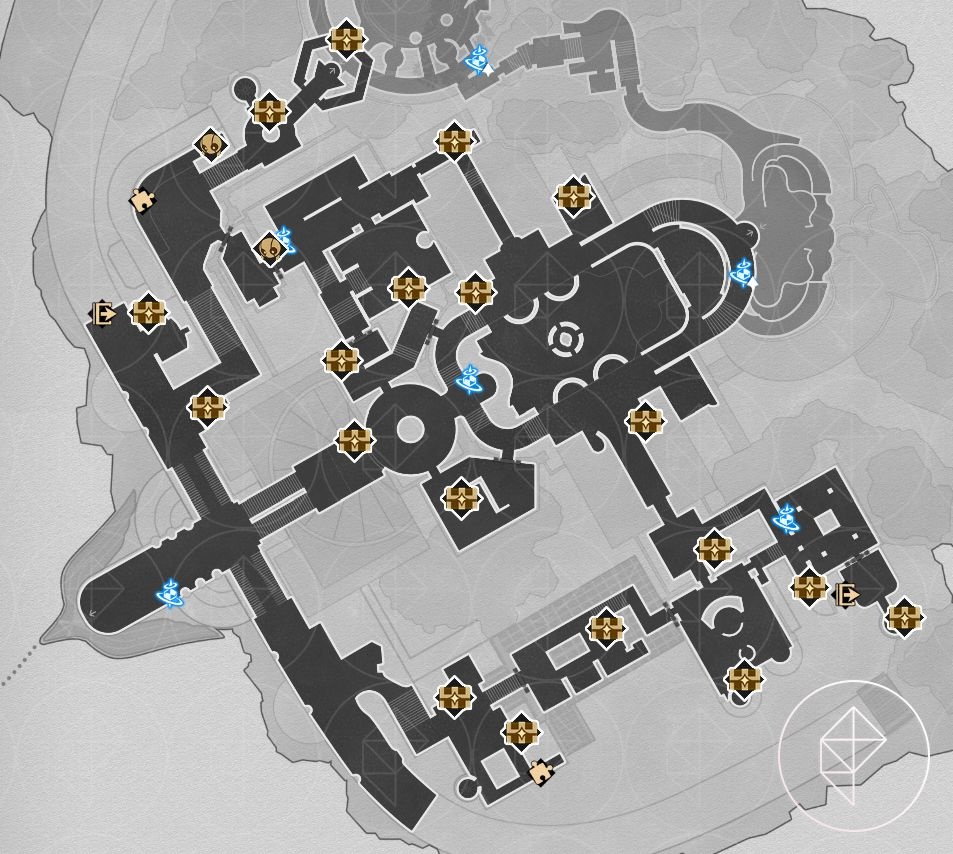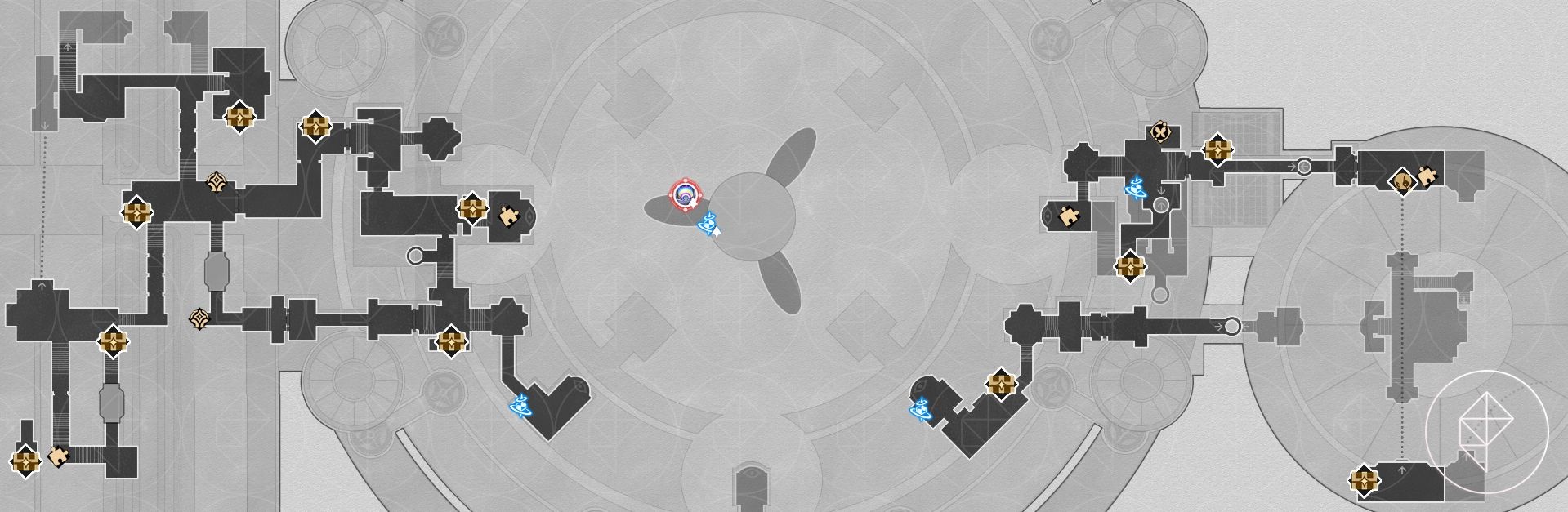 Additionally, the round 3D room in the north hides a secret elevator that reveals four chests (one center, three below). To open that elevator you must complete the side quest “I Once Was in Arcadia.” This is a required step if you want those chests.