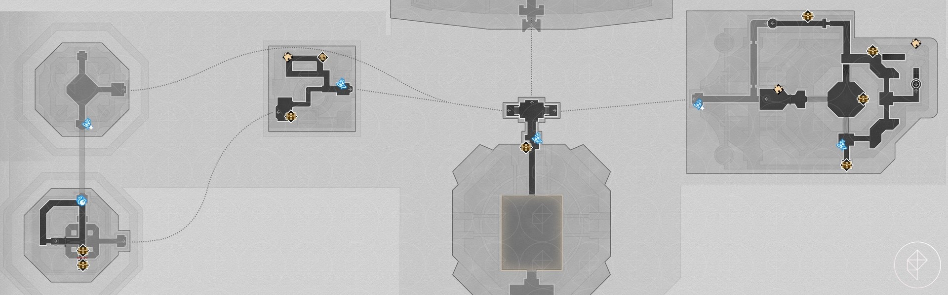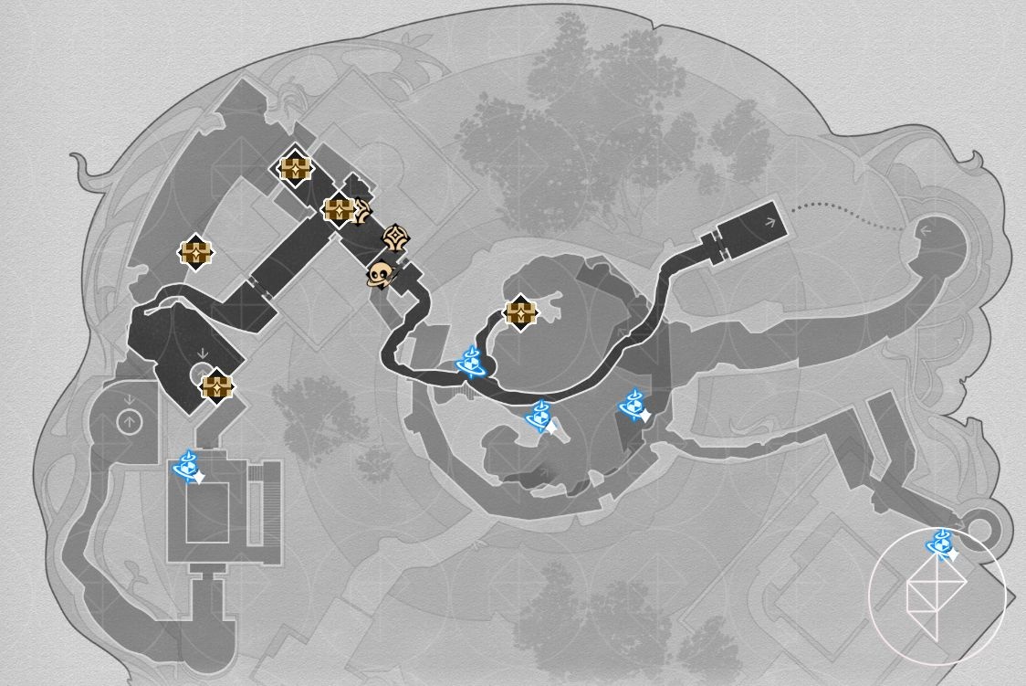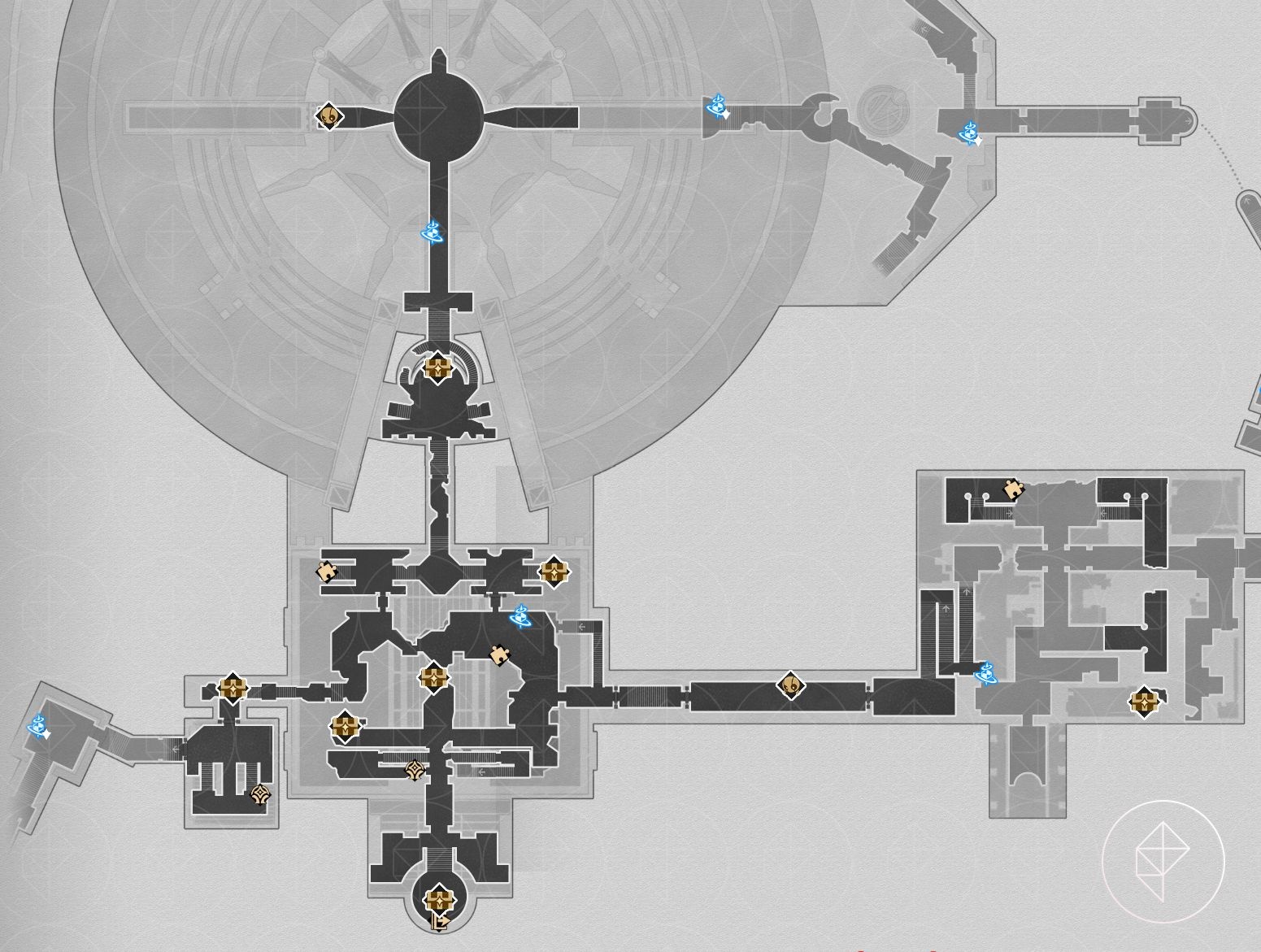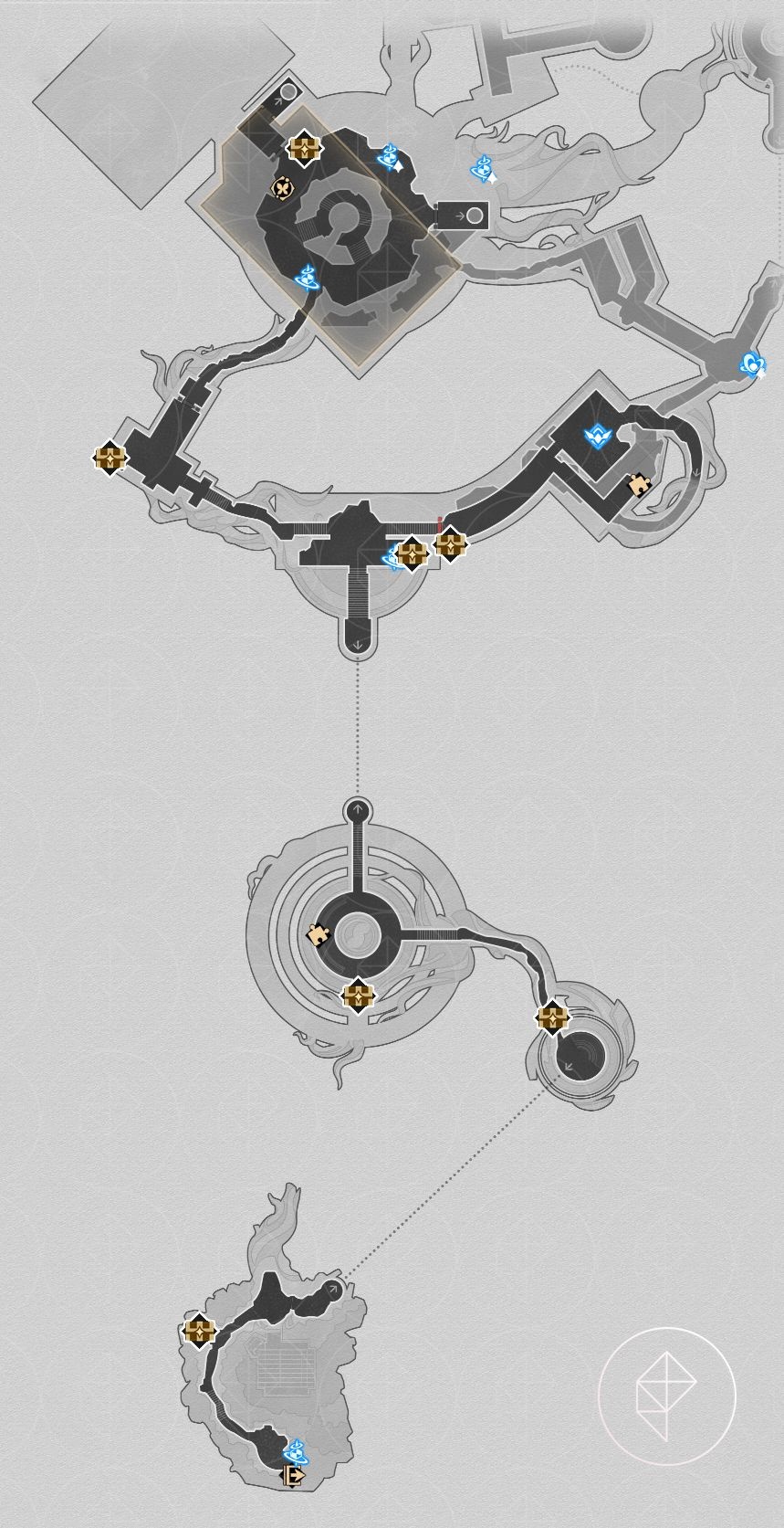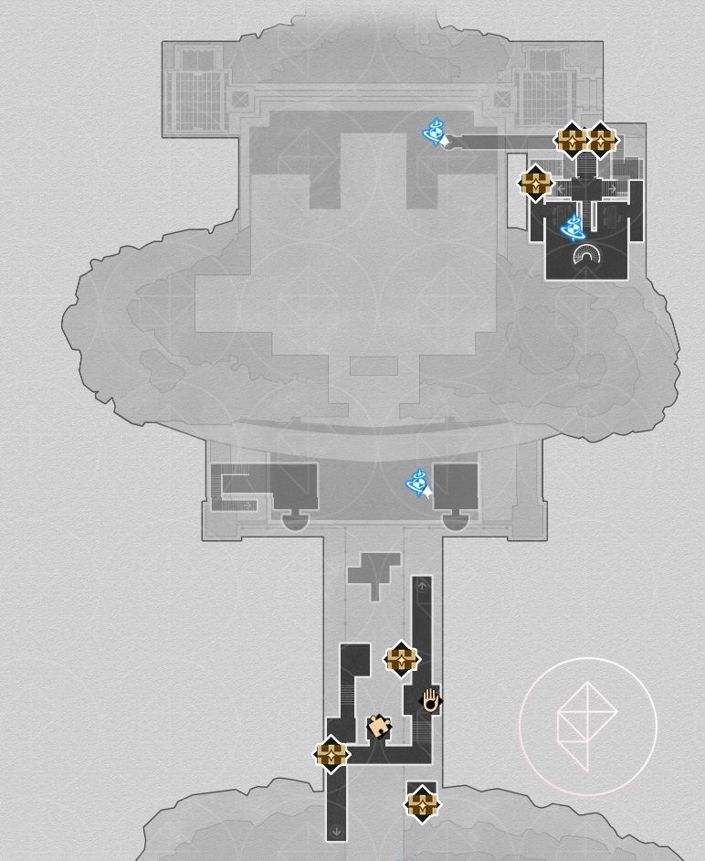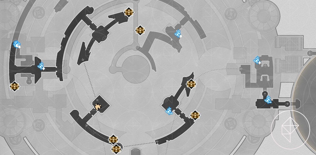 Also added in 3.3, Cloudedge Bastion requires using the compass to create paths; since compass paths change, floating-center chests are obtained via the compass. Several Spirithiefs here take nymphs or hidden passages rather than chests, so pay attention to non-chest markers.
