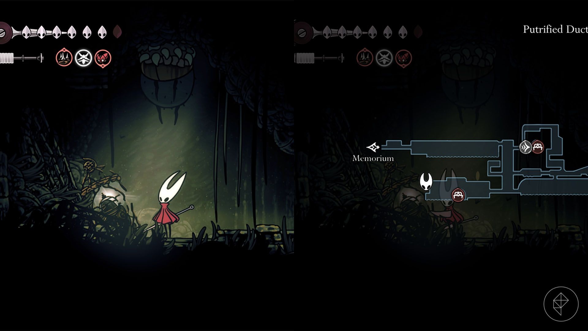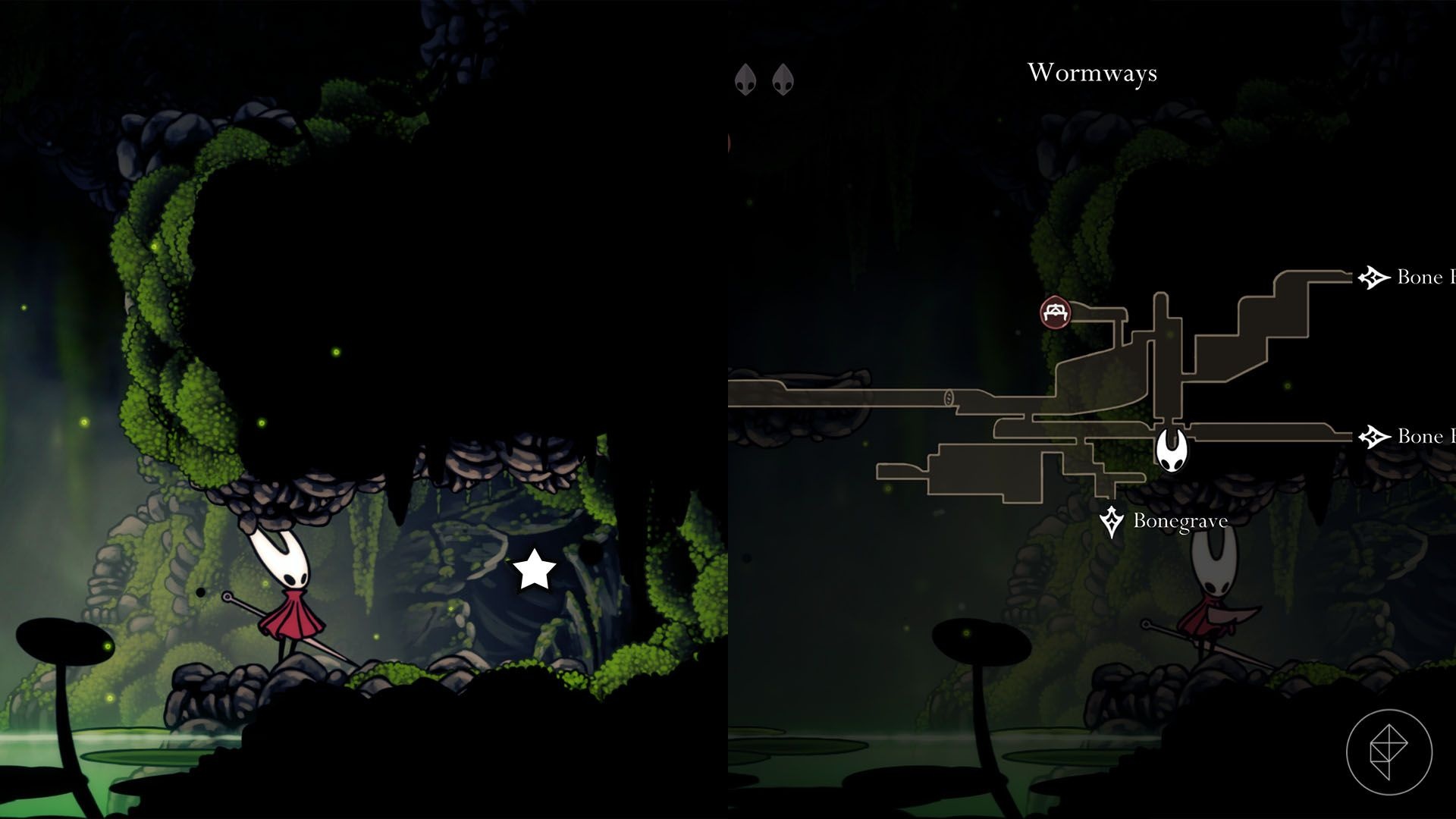 This shard requires the Swift Step ability (unlocked in the Deep Docks). Head to the left end of Mosshome, dash across to the hanging cages, sprint past the acid-spitter, enter the locked-door area, drop through the hole and break the destructible wall on the right to find the shard.
