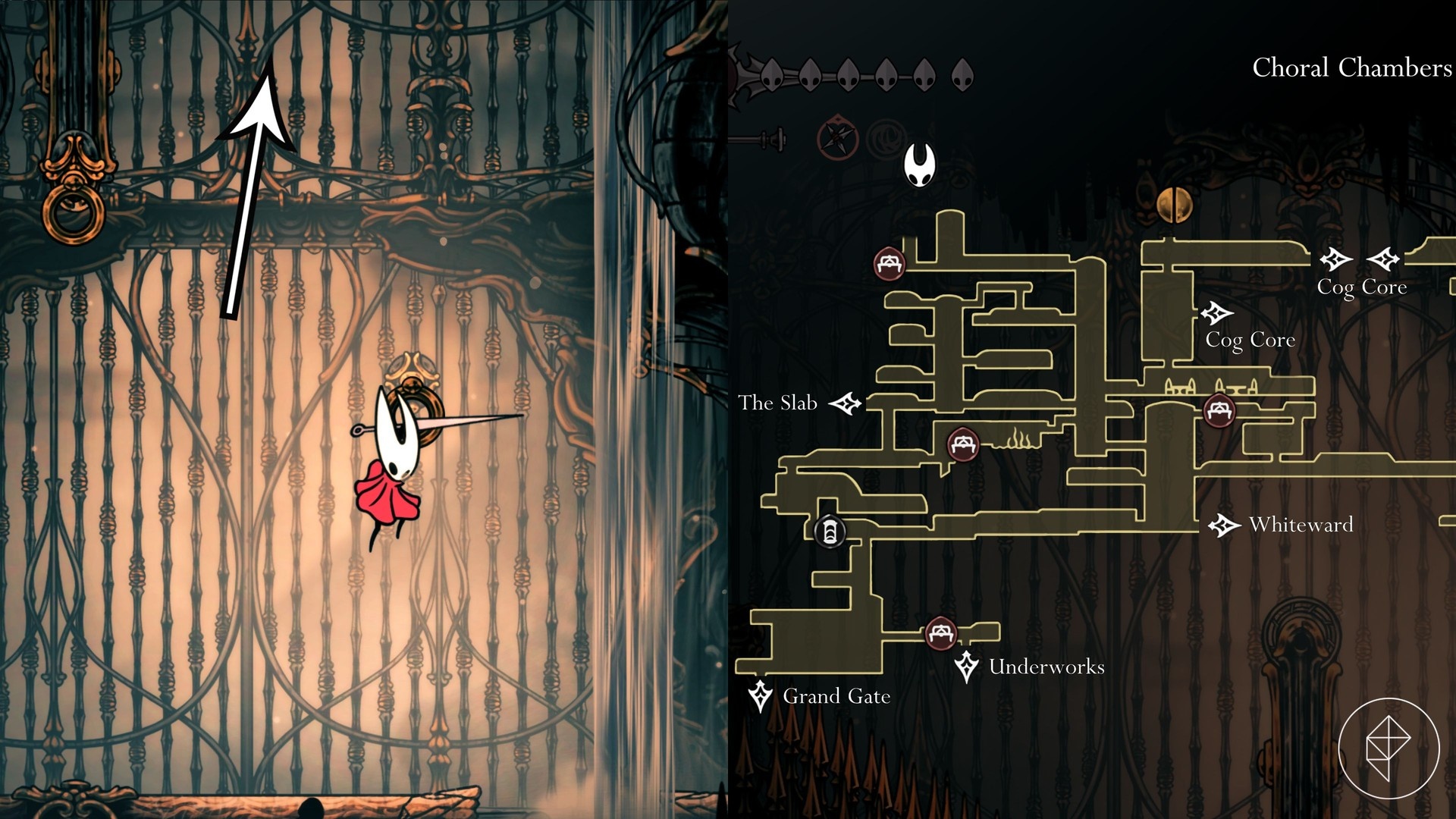 First, you must have the Clawline ability. Clawline is found in The Cauldron, at the heart of the Underworks. Once you have it, go to the northwest corner of the Choral Chambers.