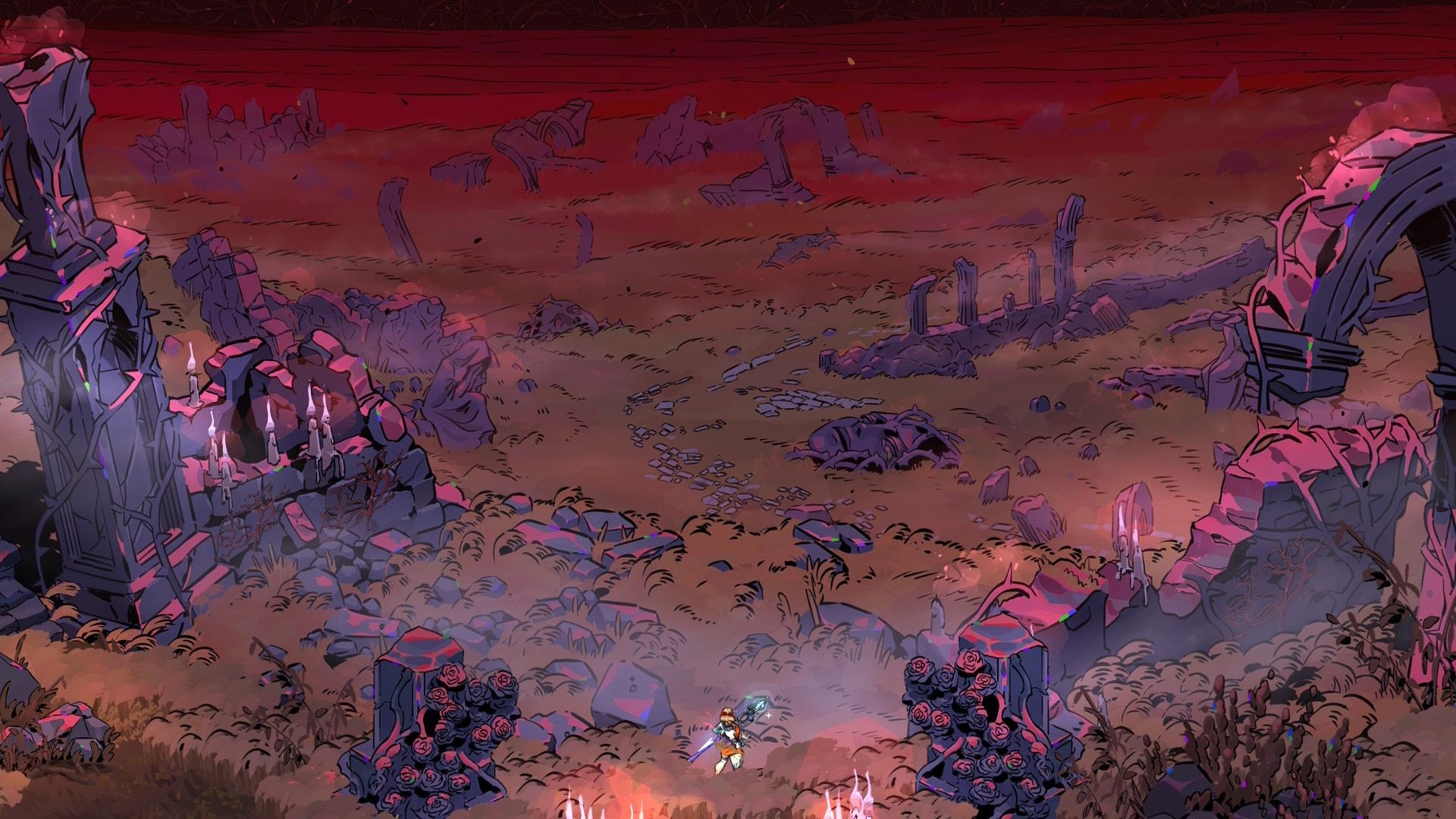 Hades 2 uses a detailed hand-drawn aesthetic similar to previous Supergiant titles. Environment examples in-game include the glades of Erebus and the underwater domain of Oceanus. Composer Darren Korb returned for the soundtrack, and Ashley Barrett performs vocals on several tracks.