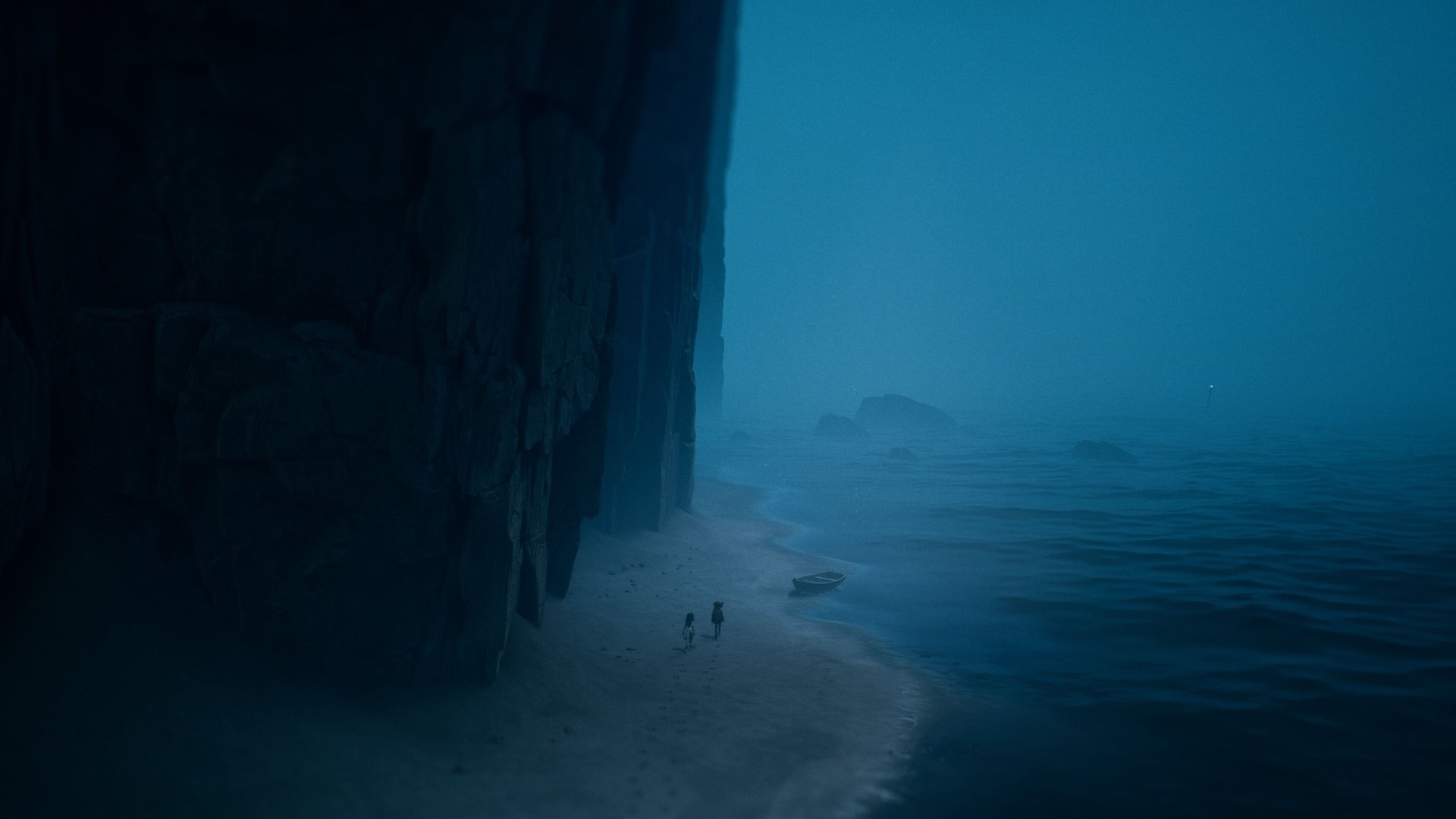 Aside from puzzles, Reanimal mixes stealth and chase sequences. In the demo, groups of hostile figures sprung out during an exploration segment and pursued the players. A recurring large humanoid enemy also appeared at key moments, creating sudden high-tension encounters that forced players to hide or run. These sections emphasized quick decision-making and timing.
