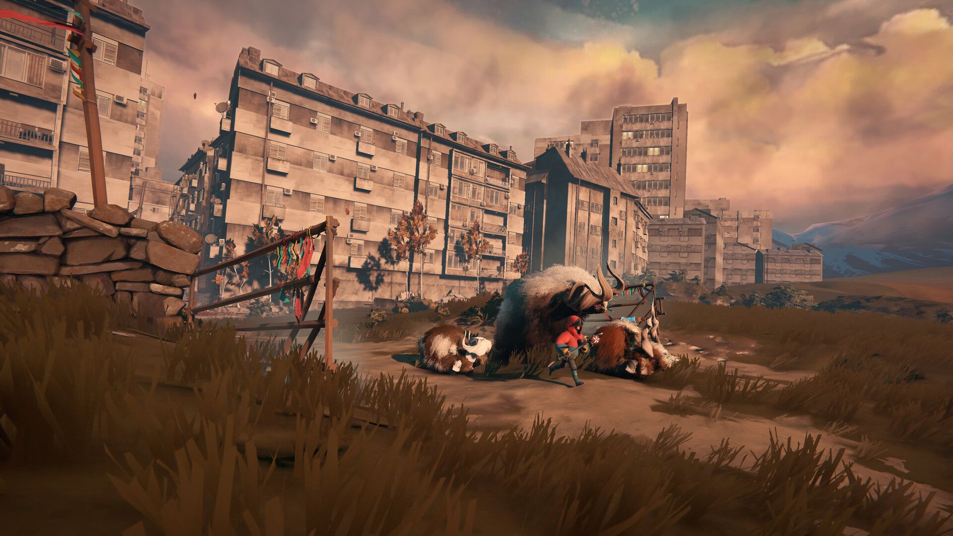 Herdling is a single-player adventure from developer Okomotive that focuses on moving a small herd of goat-like animals, called Calicorns, across a largely empty, post-urban world. The game emphasizes simple interaction systems, exploration, and short checkpoints where players can rest and care for their herd.