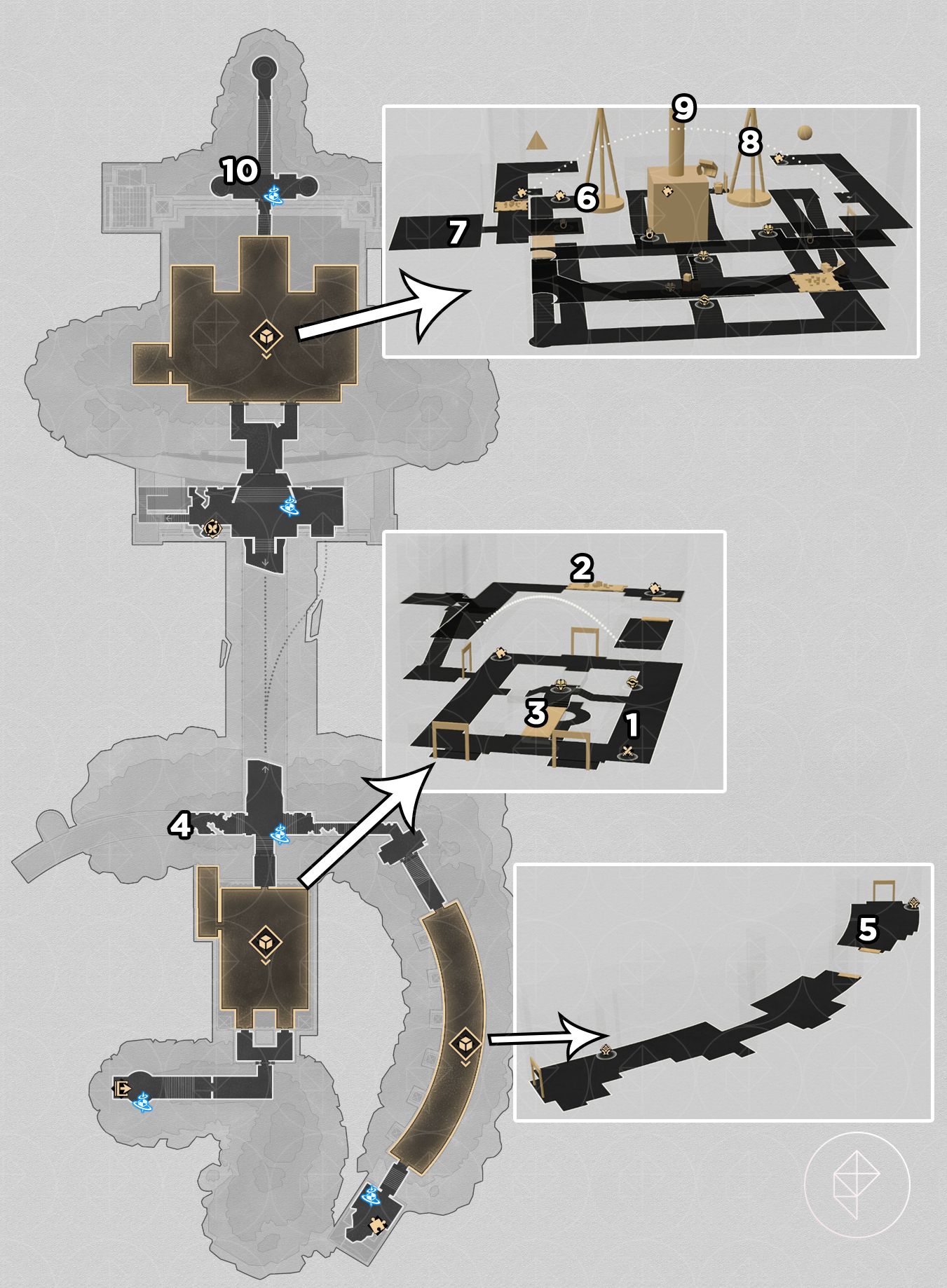 Collecting each map’s full set of nymphs awards Stellar Jade and ambrosia, plus a map-specific key item in many cases. After finishing a map you should talk to that area’s Garmentmaker to claim the rewards and any follow-up clues. Furthermore, several puzzles require timed positioning or use of the giant hand and other map mechanics, so use ranged characters and the hand mechanisms where noted. Finally, if a variant map auto-collects for you (as noted above), you still get the same rewards and can complete the extra puzzle for the precious chest and achievement.