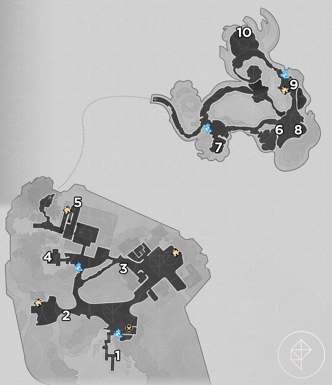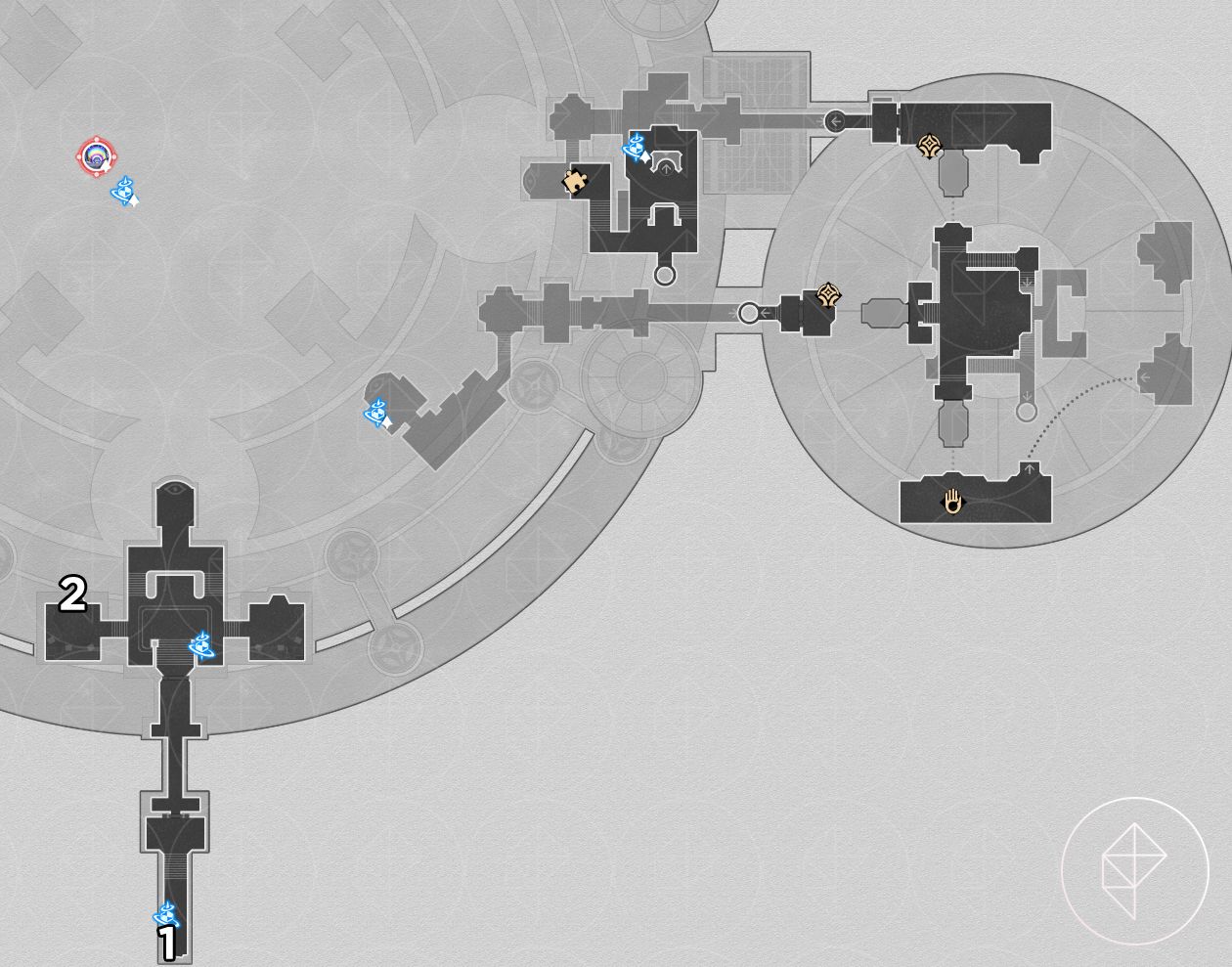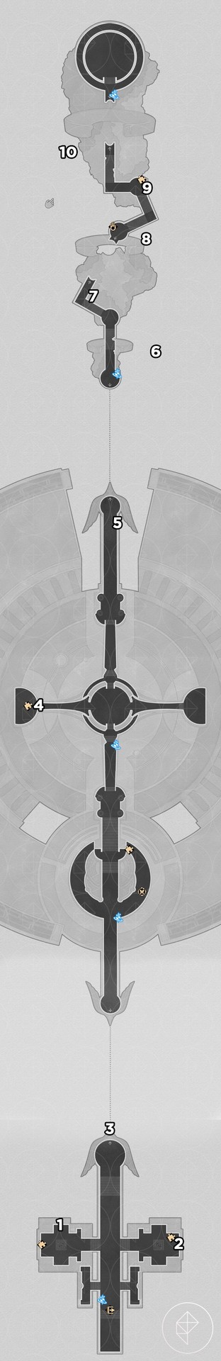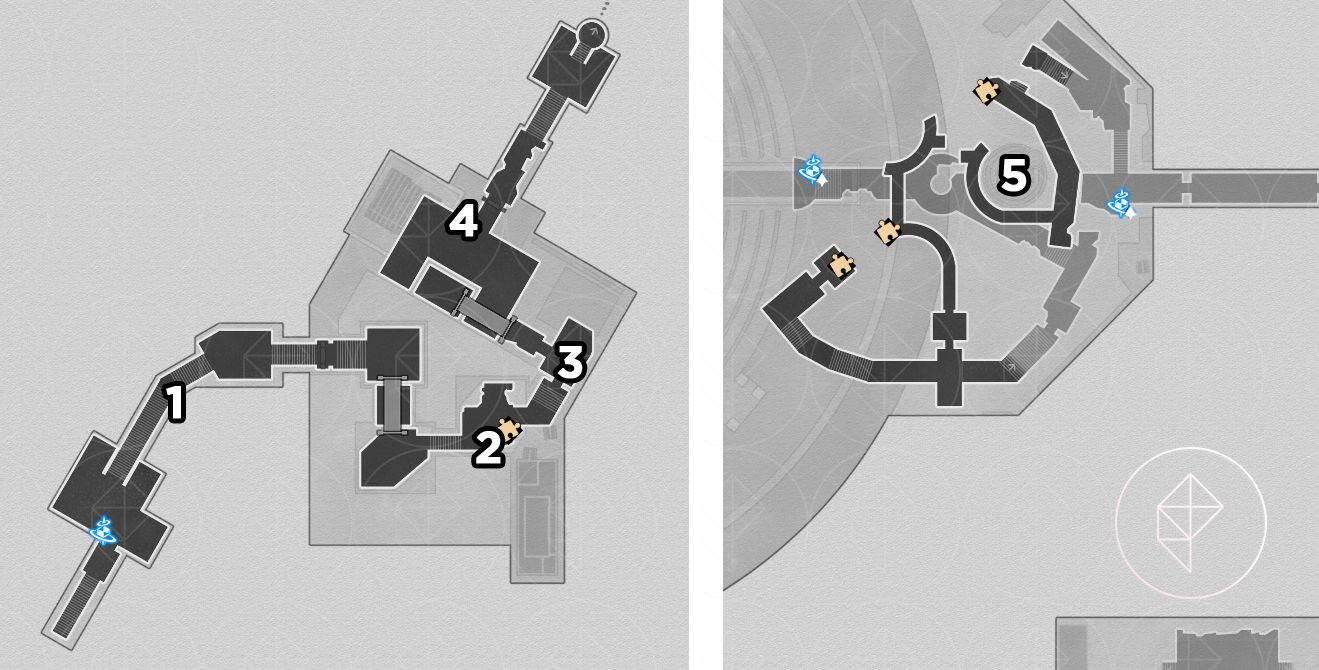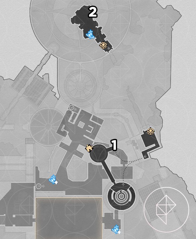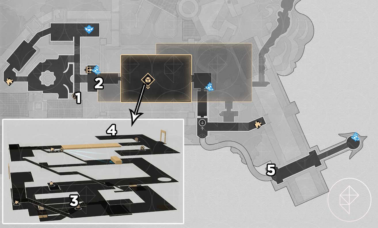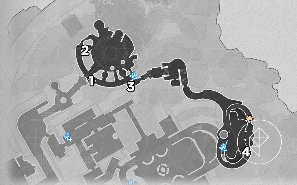As with Fallen Twilight City, the Strict Garmentmaker will auto-collect nymphs here if you already finished “Demigod Council.” You still receive Stellar Jade and ambrosia, and you also get the key item “Portentous Goldwoven: ‘Lightless Chapel.’” The chest puzzle for this map requires combining key-item slices from other players or following a visual solution; a helpful video is linked below.