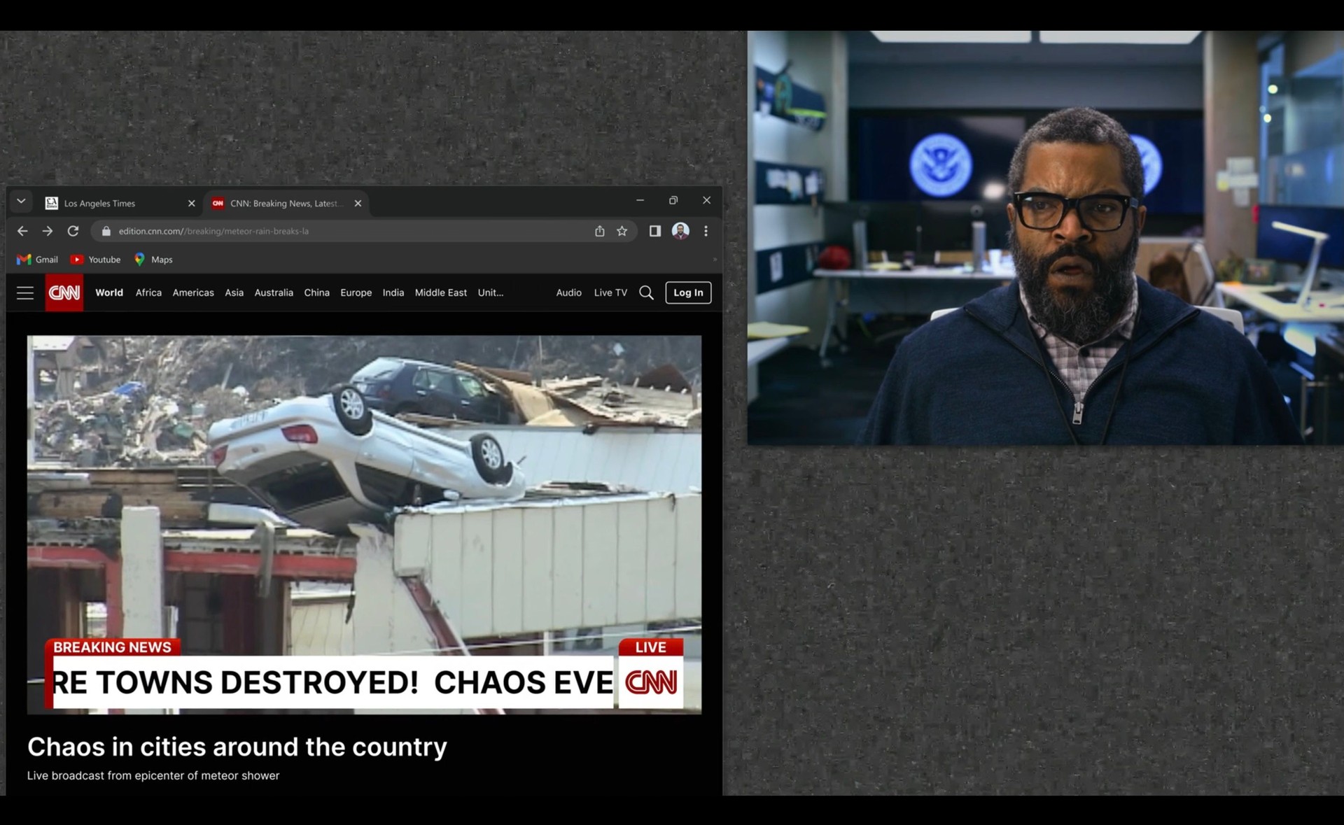 The plot centers on Will Radford, who uses the country’s surveillance system to keep an eye on his kids and stop threats to national security. His hunt for the hacker is suddenly interrupted by a full-scale alien invasion. As chaos erupts, the entire movie plays out through video calls, pop-up windows, and news clips on his computer.