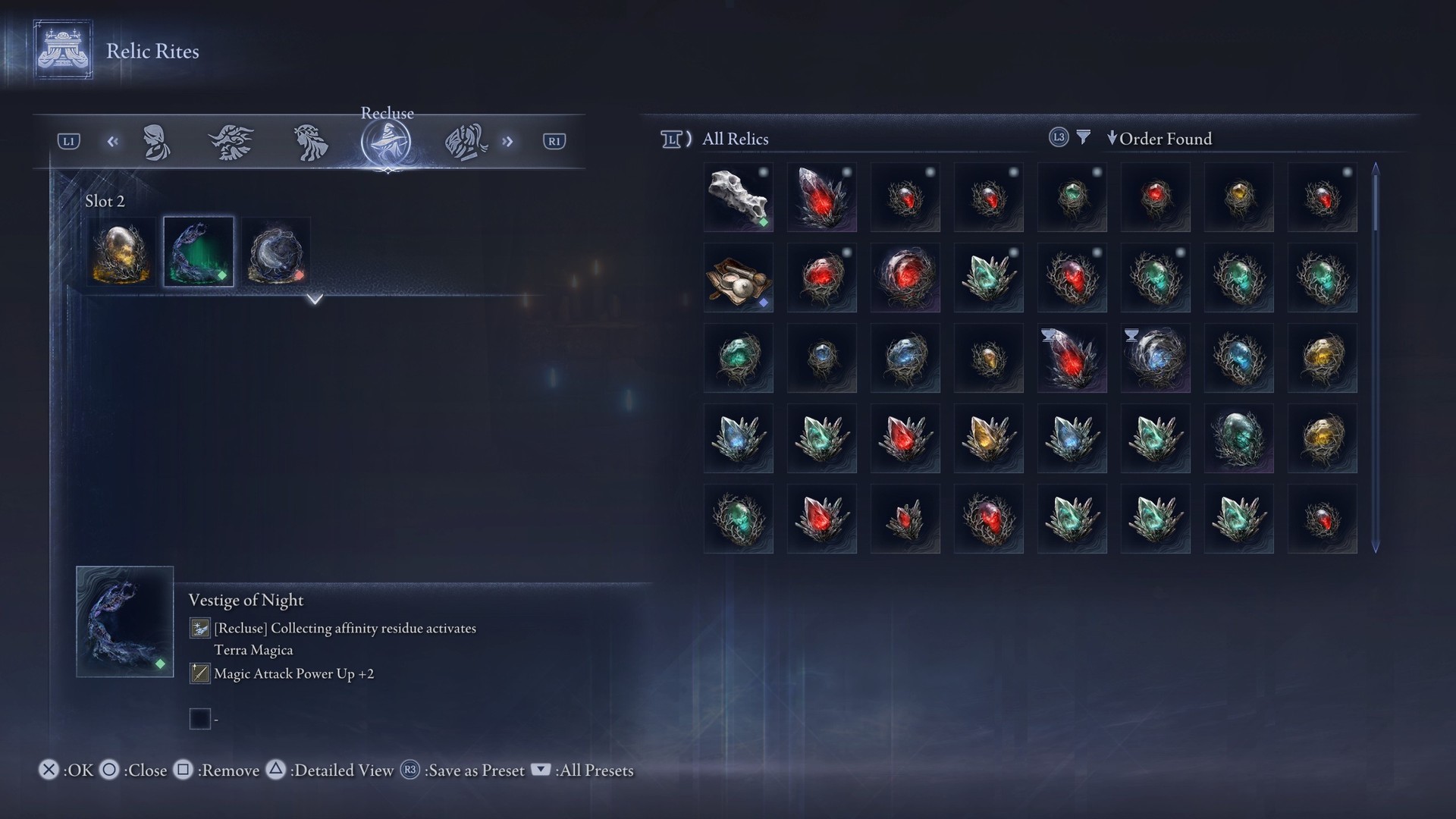 - Unlocking and using the Vestige of Night relic