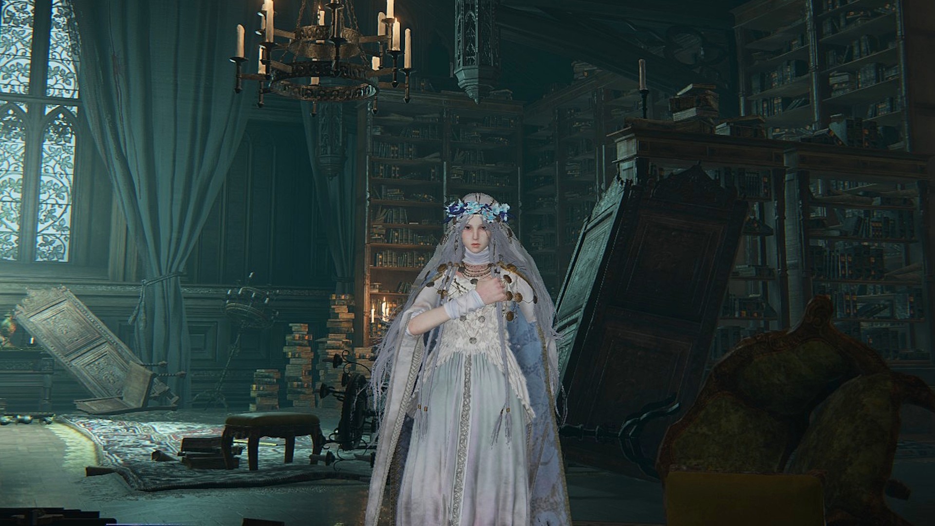 Once Chapter 1 is done, you can jump straight into Chapter 5. Speak with the Duchess again, then find the Recluse near the map’s western edge. She’ll ask you to reflect on the darkness within, which teleports you to a gloomy corridor leading to a library filled with night-infused Putrid Corpse enemies. These foes scream and explode when they get close, so be cautious.