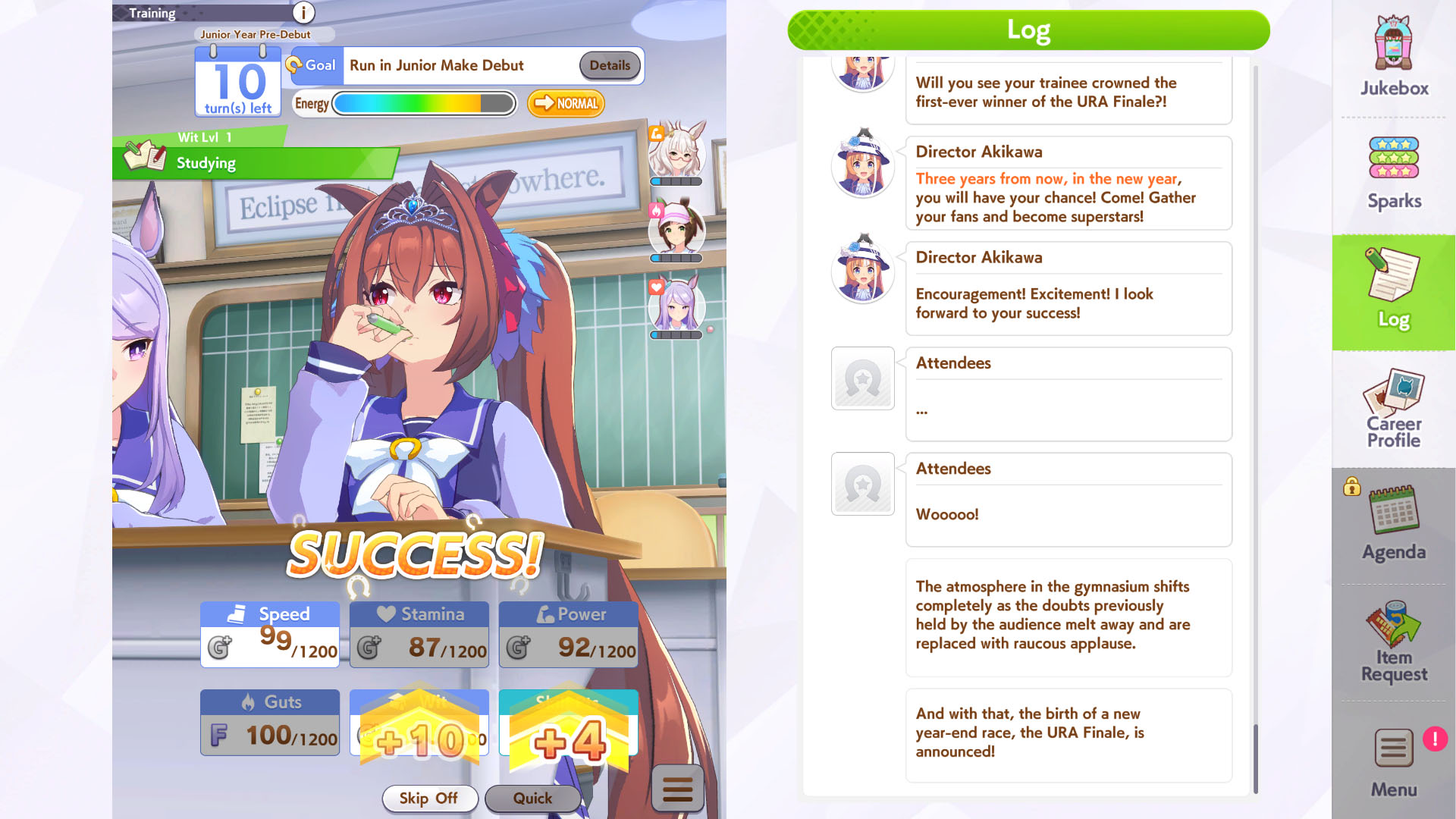 You can only raise stats during a career by training, using Support cards, and inheriting bonuses from Veteran characters. Your uma’s mood also plays a big role—it acts as a multiplier for training results. The moods and their effects are: