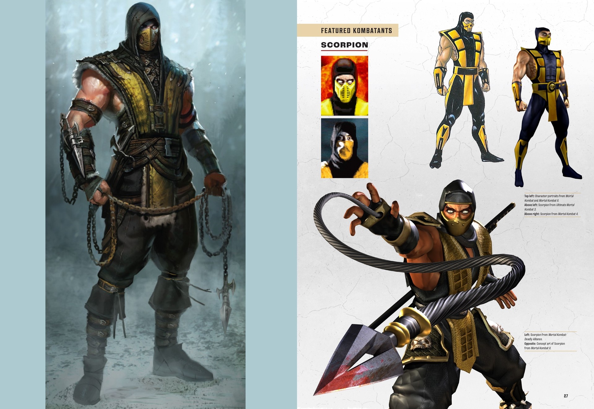Additionally, the book documents the creative process behind character design and stage work, giving concrete examples and visual progressions from early ideas to later games such as Mortal Kombat 11.