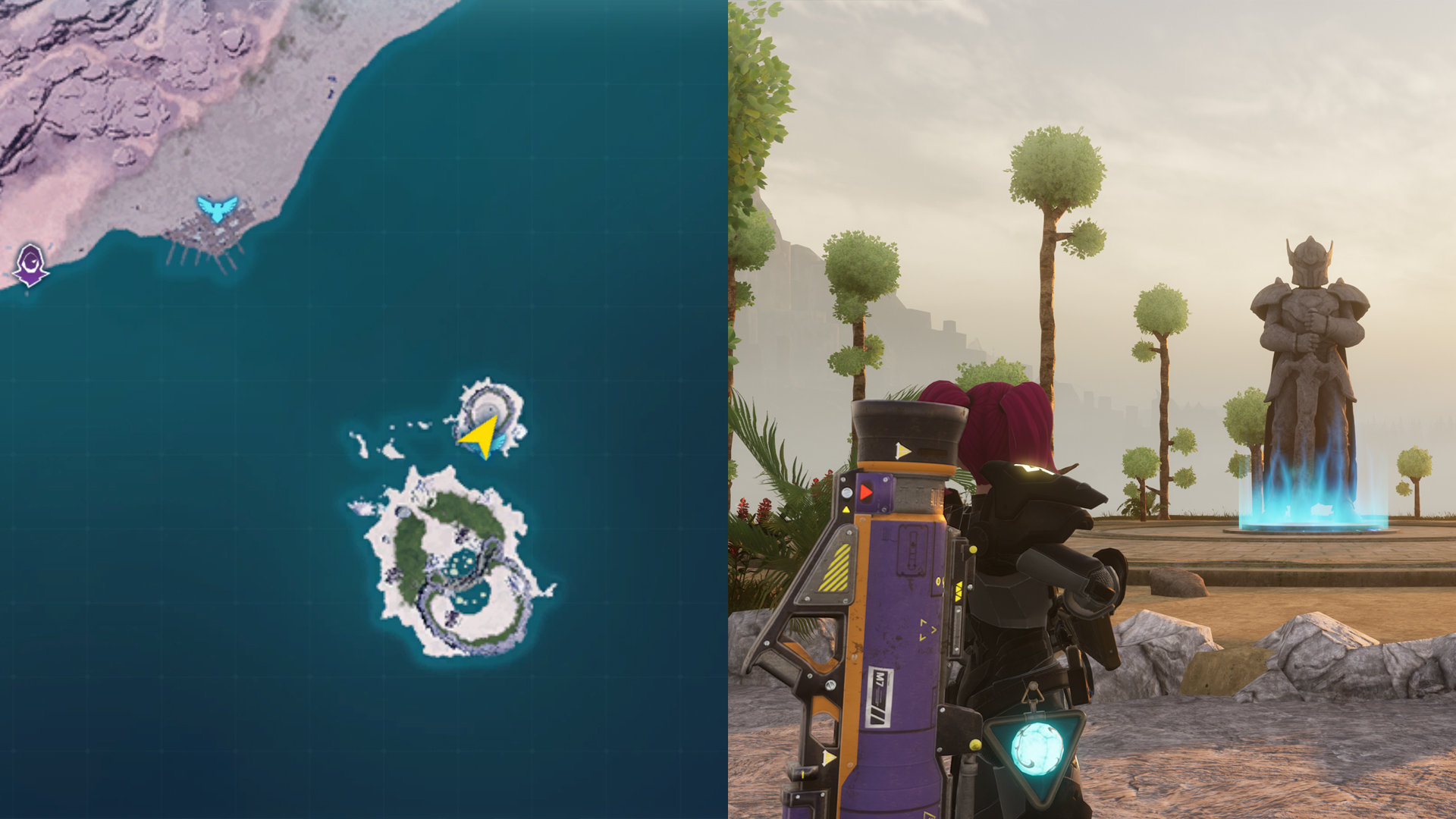 Your destination is the Sealed Realm of Terraria dungeon. You’ll find the entrance on one of two tiny islands just south of Mount Obsidian (that’s the volcanic region). The closest teleport waypoint is Fisherman’s Point. Once you’re there, head to the smaller northeast island – look for the big grey knight statue and interact with it to enter the dungeon.
