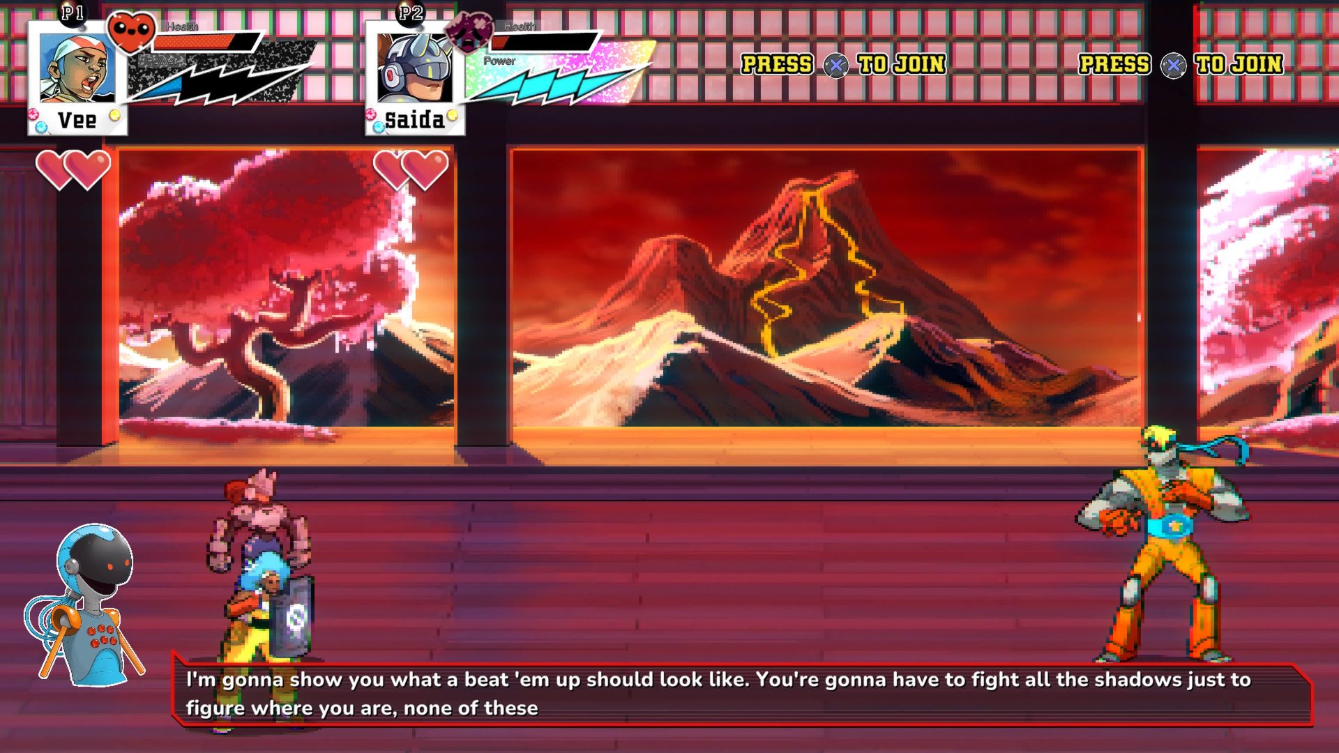 Ra Ra BOOM plays like a traditional beat-’em-up with modern additions. Each character can use melee moves and firearms, and players collect Scrap Metal during levels. Notably: