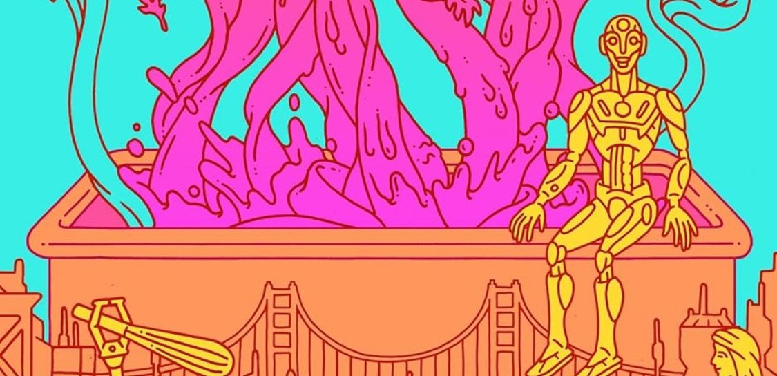 The novel also plays with the idea of gender, especially through its robot characters. Since robots can modify their bodies, Newitz uses this to explore what it means to feel out of place in your own skin. “With robots, you can literalize that. You can be like, ‘Well, this robot has three legs, and she’s experiencing things really differently.’” There’s even a scene inspired by Newitz’s own experience with top surgery, reimagined with a sci-fi twist.