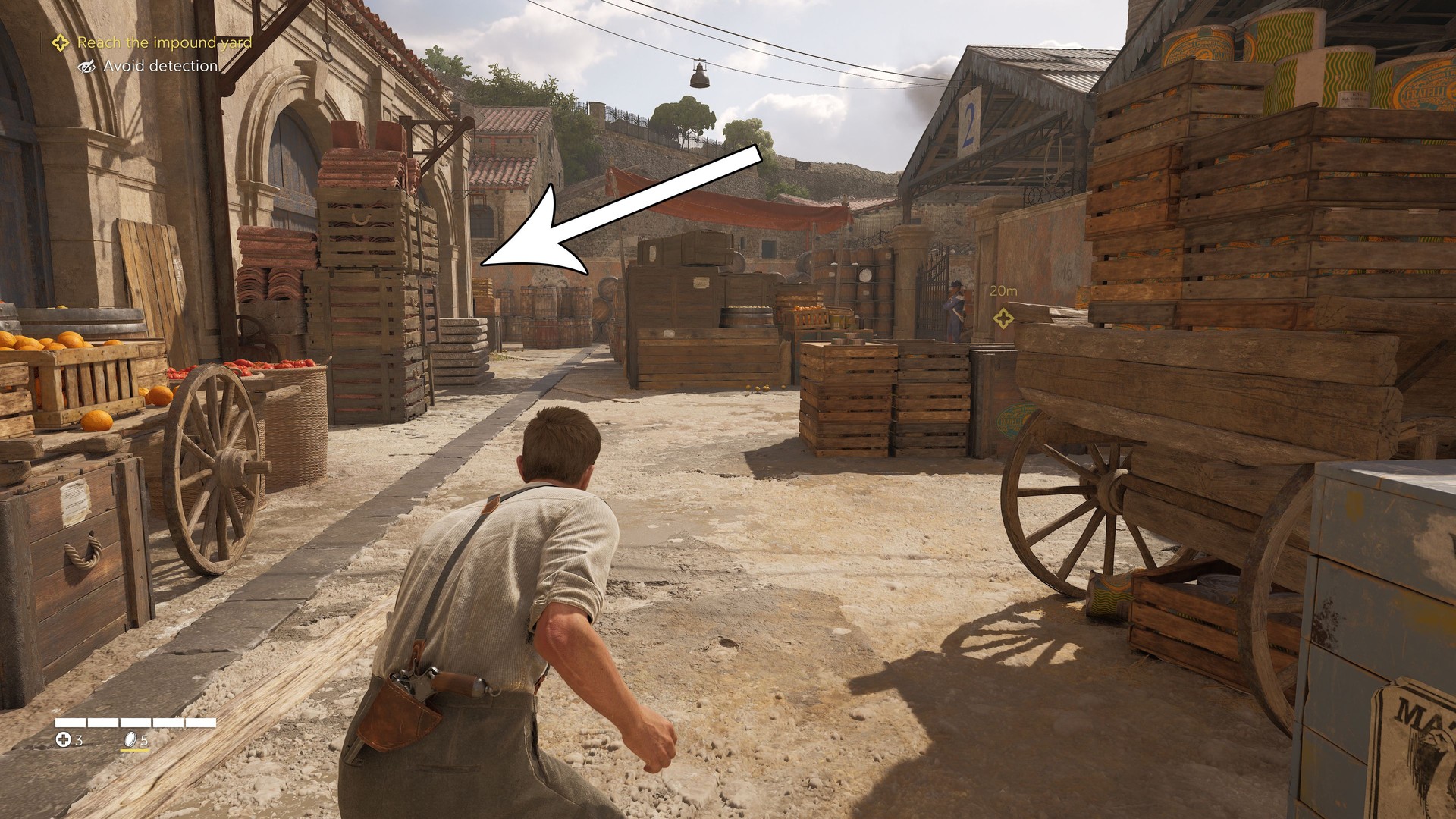 Later, while infiltrating the customs yard, wait for two guards to finish talking, then move forward. Instead of taking the gate on the right where the mission continues, take the left path. At the end, go through the left door (watch the guard) to reach a small room with a dresser; the code is written there.
