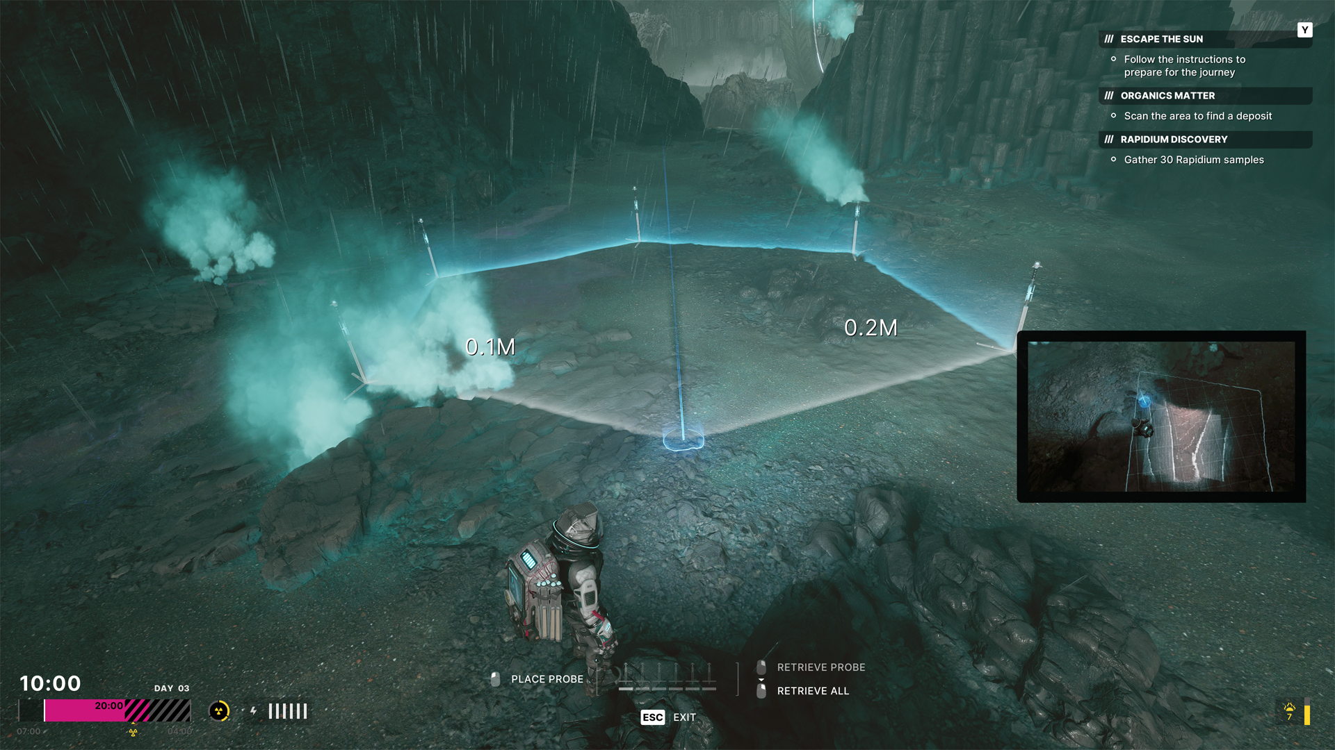 - Find the deepest part of the deposit by standing in the blue smoke and equipping your Polygonal Scanners.