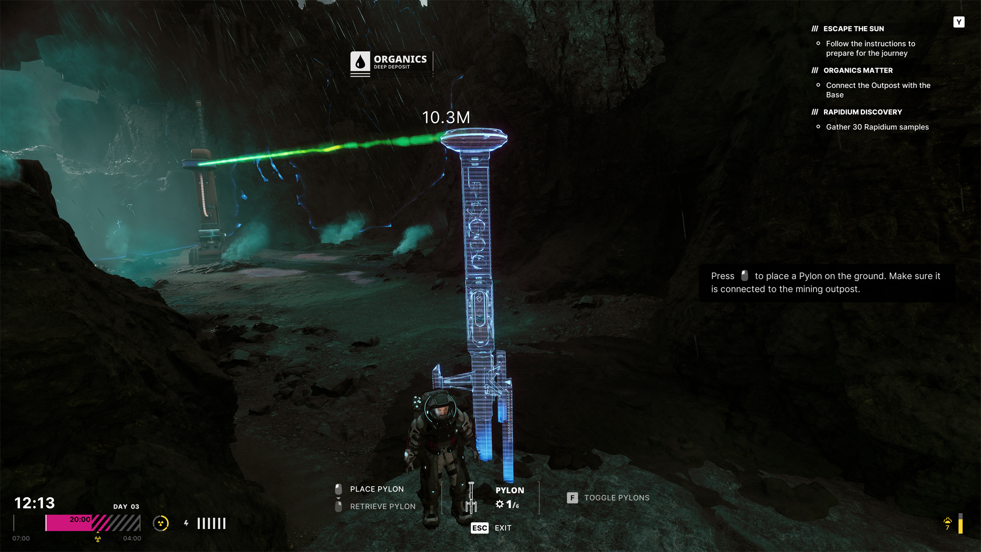 If you’re still searching for the first Organics spot in the prologue, look for a deposit on a higher ledge. You can reach it with a Climbing Hook, but if you don’t have one, there’s a workaround. Head left, pass the Rapidium, then turn right. This path lets you access the Organics deposit without any special gear.