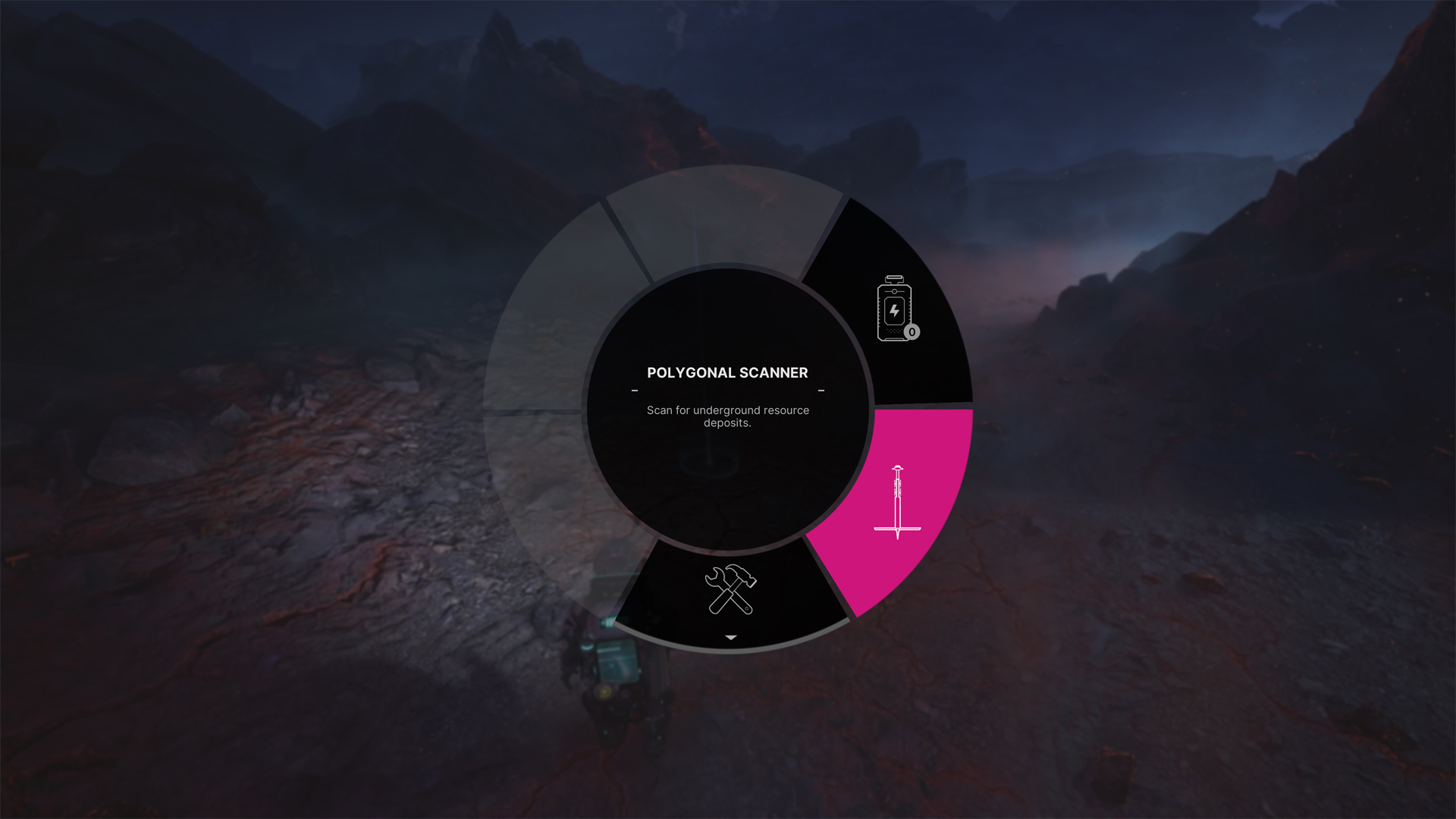 When you’re ready to mine, stand in the middle of the deposit and equip your Polygonal Scanners (you should have unlocked these during the prologue).