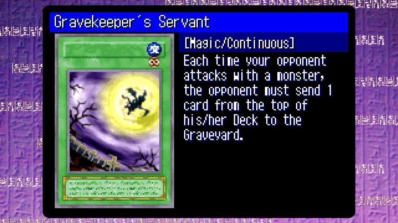 Gravekeeper’s Servant is a Yu-Gi-Oh! card that directly affects how opponents draw and discard, and it pairs naturally with a deck-depletion strategy. Meanwhile, Konami’s Yu-Gi-Oh! Early Days Collection collects 14 Game Boy–era titles, including The Eternal Duelist Soul, letting players revisit those mechanics on modern hardware.