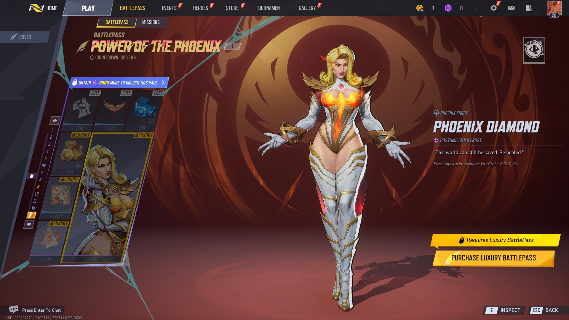 Inspired by Jean Grey’s Phoenix, this skin costs 400 Chrono Tokens. Unlock at 9,600 tokens.