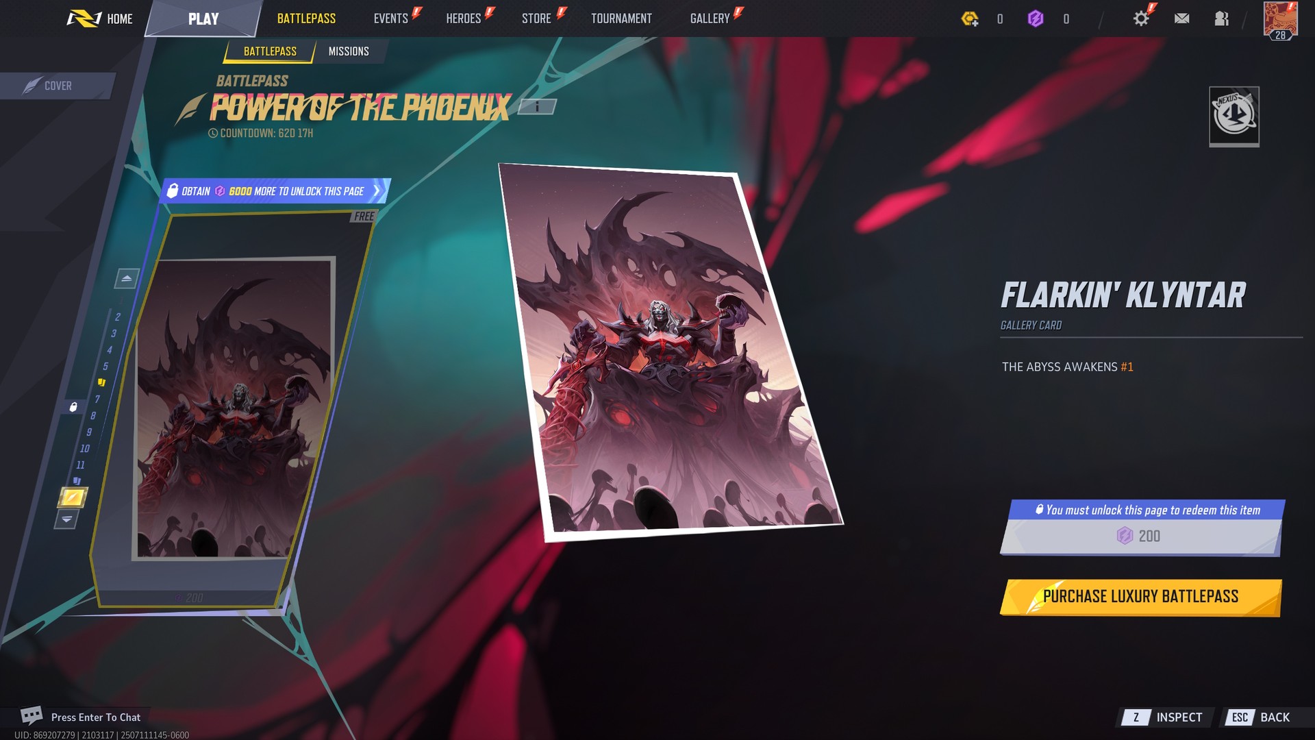 Unlock at 6,000 Chrono Tokens, then spend 200 tokens for the gallery card.