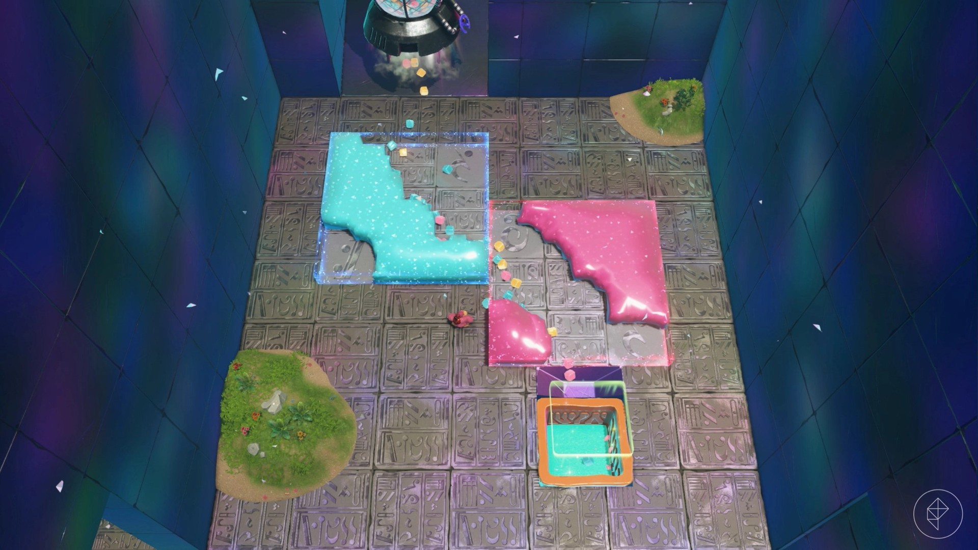 - Resort Hide-and-Seek: Find Fractones hiding in strawberries, floating orbs, and stone bananas to claim a gem.
