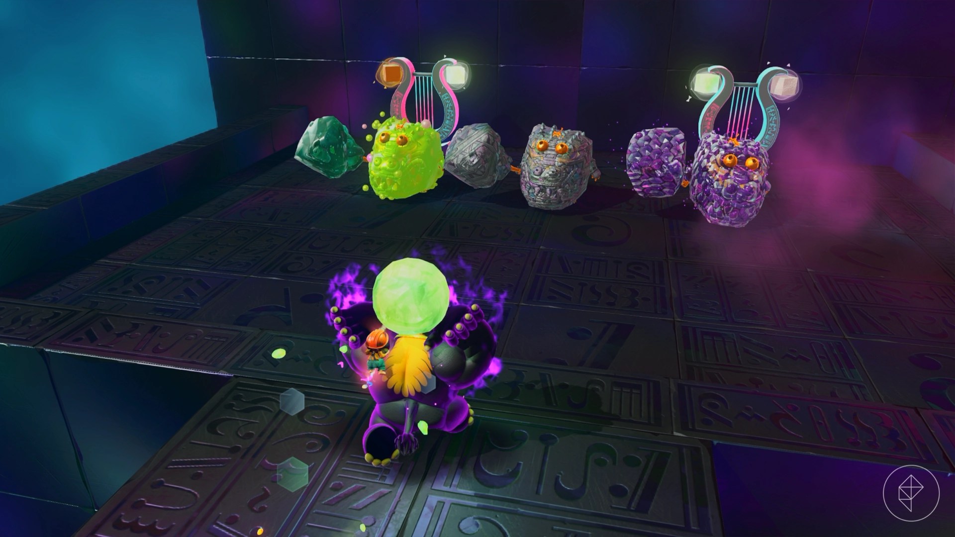 – Destroy void machines and explore around tall towers to uncover gems previously blocked by hazards.