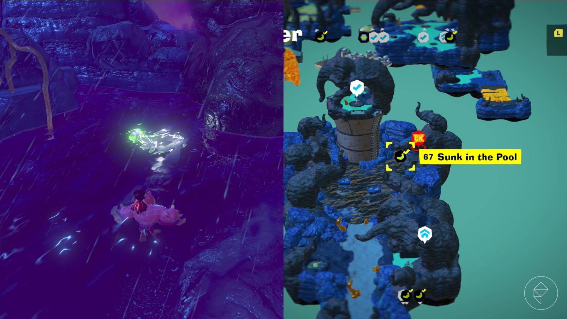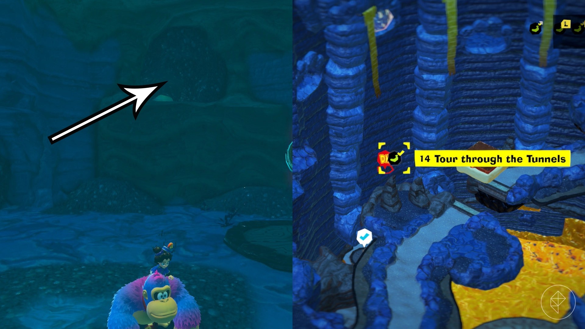 – After beating Sinister Blusterwing again, explore pipes and elephant statues for bananas.