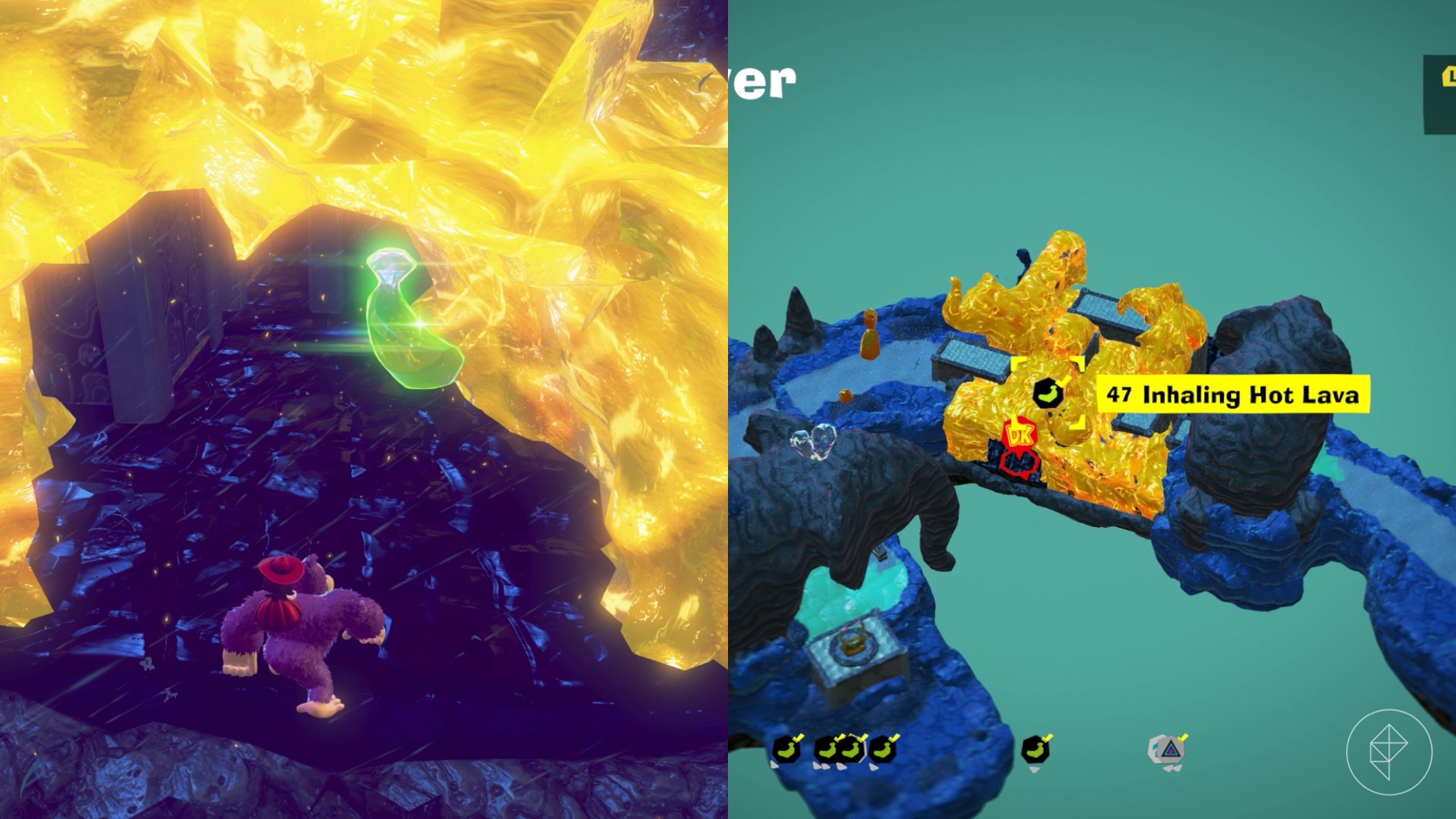 – Look out for hidden Fractones in lava or disguised as embers for extra bananas.